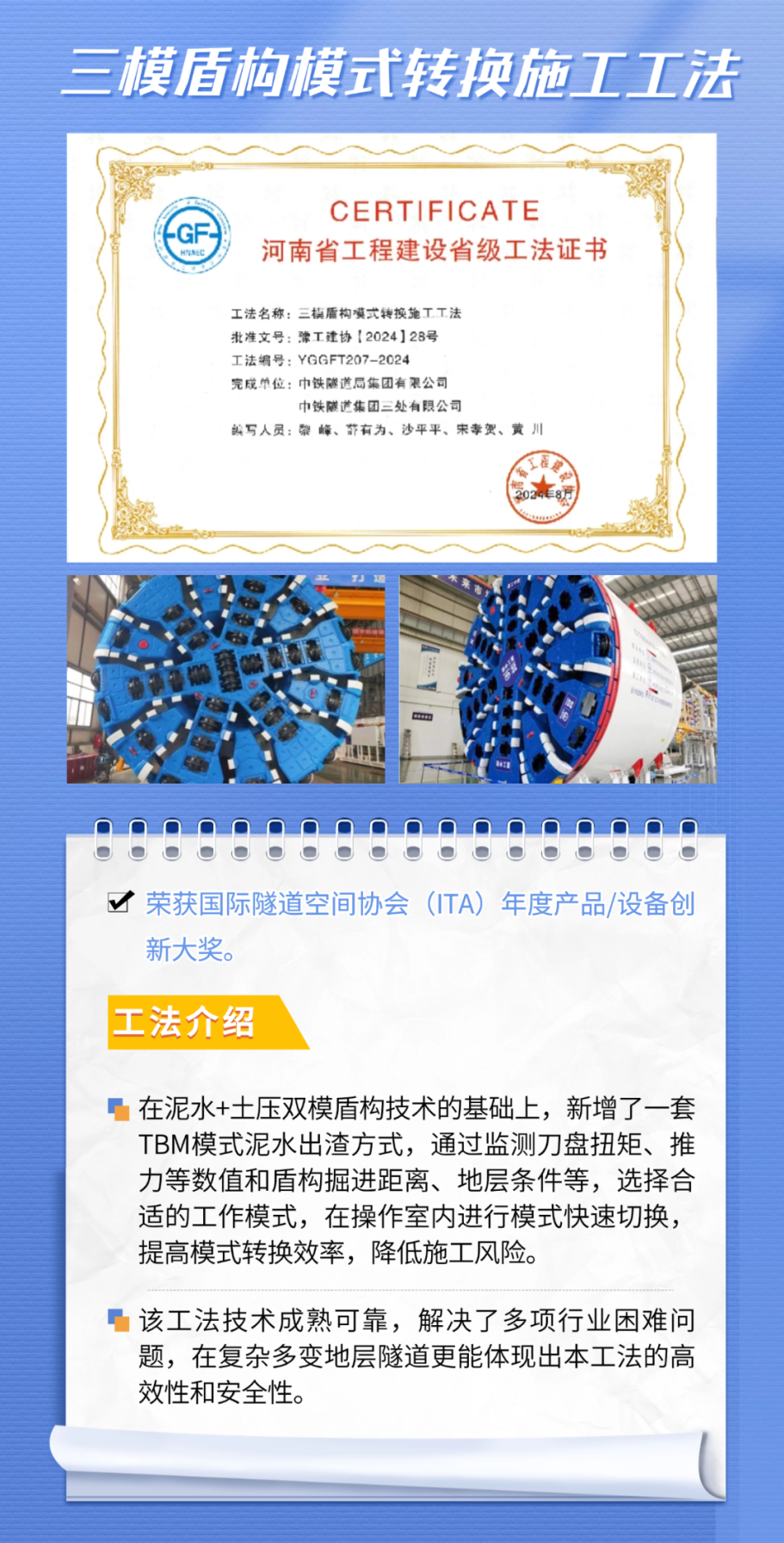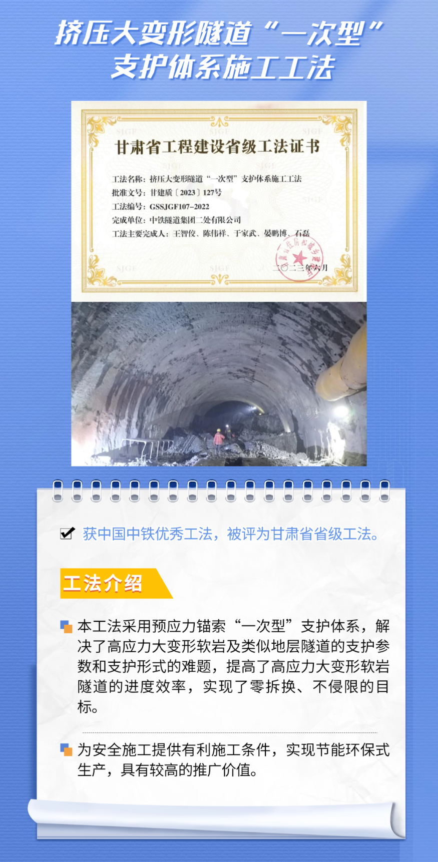 通过46年来的不懈努力,中铁隧道局自主研发的工法专利,在解决复杂地质条件下的施工难题方面发挥了重要作用,为企业高质量发展、行业技术进步提供了有力支撑。