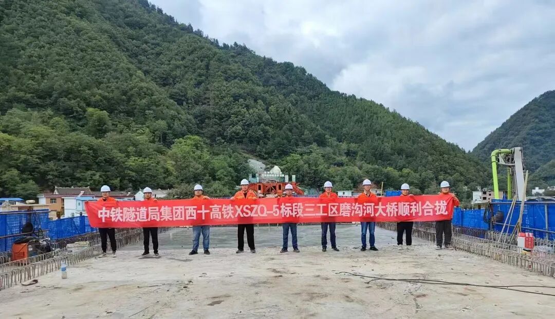 9月18日,西十高铁5标三工区磨沟河大桥2×56m连续梁顺利合龙,标志着项目桥梁工程建设取得重大进展。磨沟河大桥位于陕西省商洛市山阳县磨沟里村,全长355米,为西十5标的重难点工程。(二处供稿)