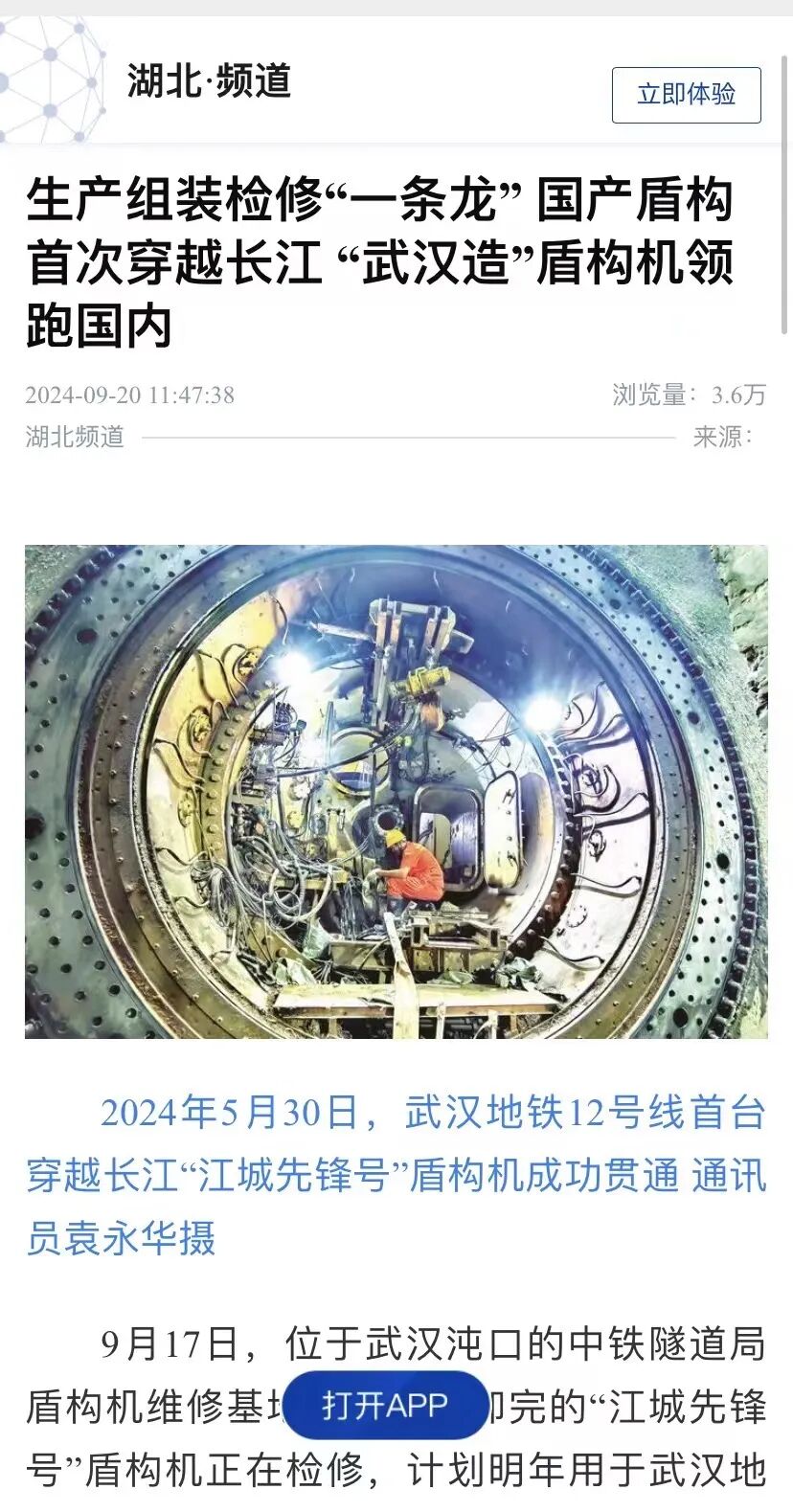 生产组装检修“一条龙” 国产盾构首次穿越长江 “武汉造”盾构机领跑国内