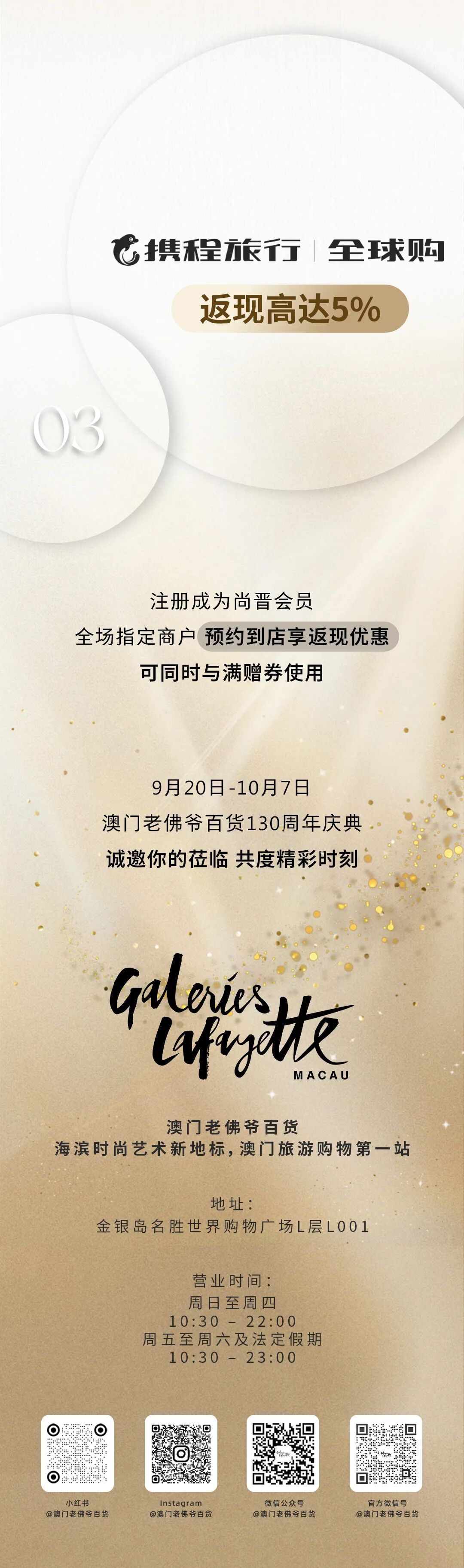 文章内容来源于公众号:澳门老佛爷百货,点此可查看原文,内容版权归相关企业所有,本网站仅供交流学习。若涉及版权问题或存在侵权情况,请及时与我们联系,我们将第一时间进行删除处理。