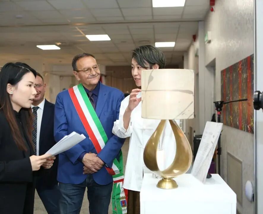 展厅内,8组源自东方的非遗跨界艺术佳作惊艳亮相,吸引众多欧洲游人驻足围观。在菲乌米奇诺这座充满历史建筑和西方文艺积淀的文化老城,东西方文化艺术展开了一场震撼人心的对话。