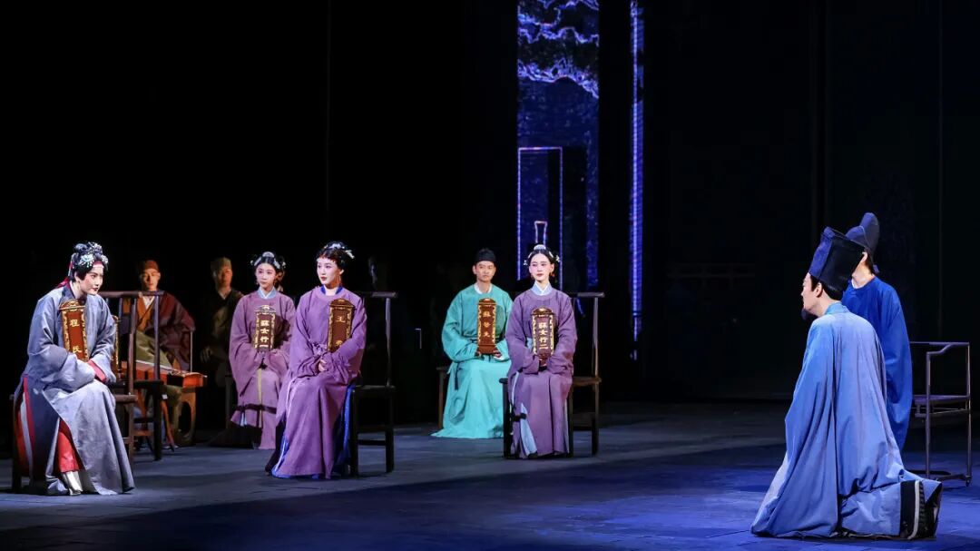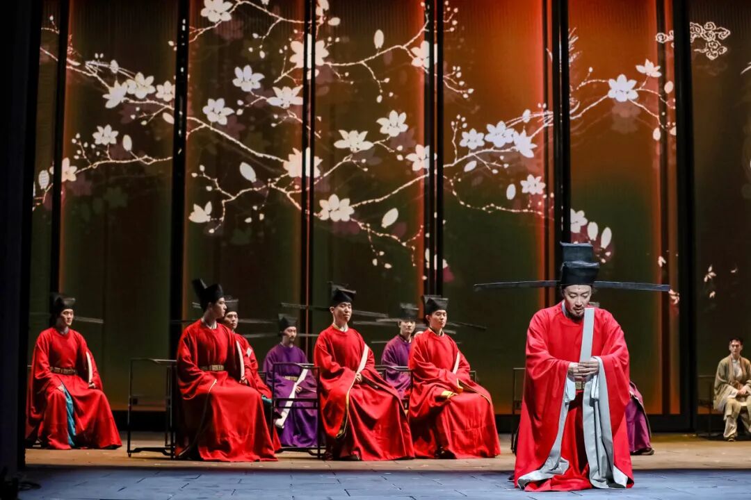 此剧在演出中,歌队发挥了重要作用,他们是北宋官僚、黎民百姓、家人、灵魂等,也时而站在当代文化立场,发出今人的调侃、戏谑、评判,增加了画面感和喜剧性。舞美设计和舞台调度追求一种宋代绘画般的雍容、清奇、娴雅的构图效果,充分展现了中国式戏剧美学的写意空间。