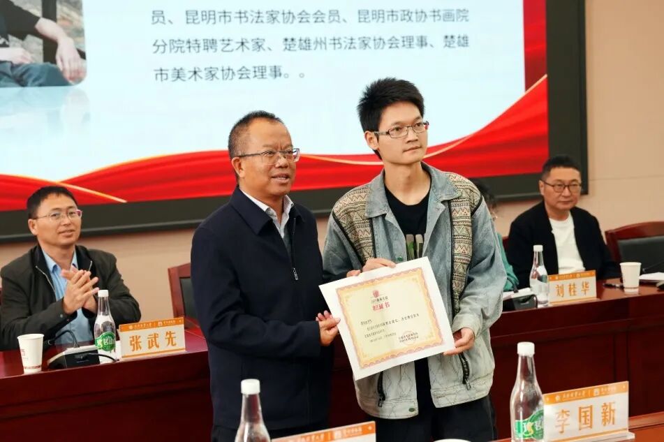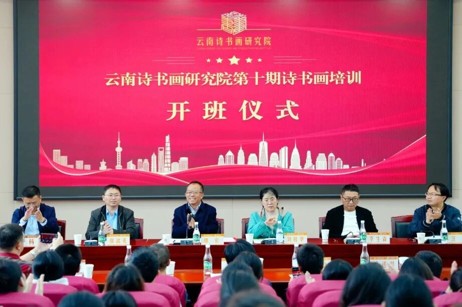 10月24日,云南诗书画研究院第十期诗书画培训班开班暨研究员授聘仪式在我校举行。西南林业大学党委副书记、云南诗书画研究院执行院长魏宏,云南省南社研究会副会长刘桂华,云南省诗词学会副会长文清风,云南民族画院青年画院院长赵焓、副院长王先金,以及我校党委宣传部、教务处、学生工作处、校团委、艺术与设计学院(艺术博物馆)、文法学院有关负责人出席了仪式。