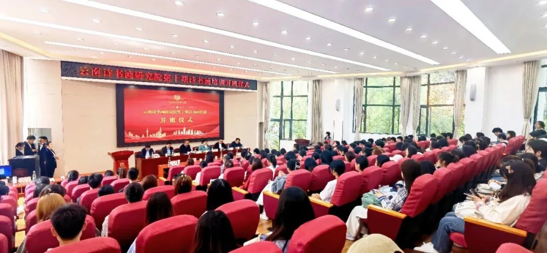 仪式由云南诗书画研究院办公室主任常启虹主持,分两个阶段进行,第一阶段为云南诗书画研究院第十期诗书画培训班开班仪式,第二阶段为云南诗书画研究院研究员授聘仪式。