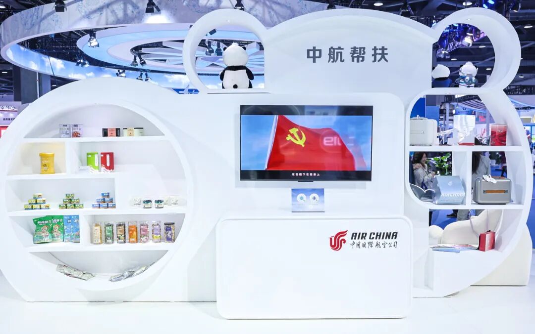 在“中航帮扶”展区,介绍了中航集团发挥“航空+”帮扶模式优势,助力内蒙古苏尼特右旗、广西昭平县推进乡村全面振兴取得的新成果。