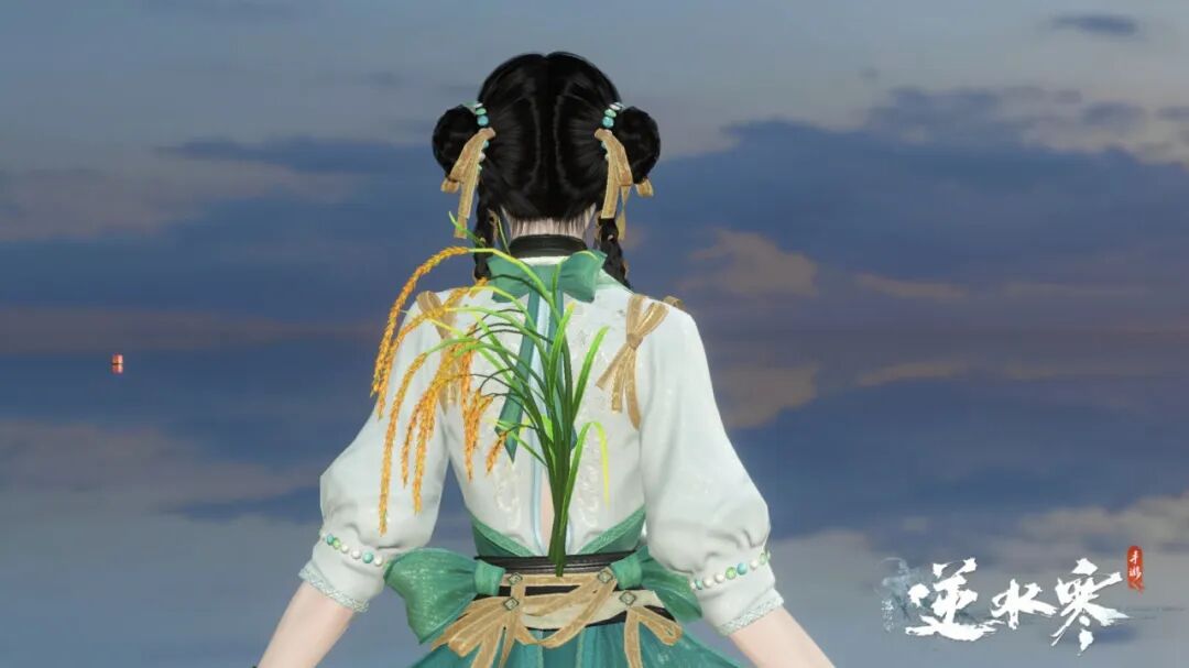 版本更新当天,可登录游戏“灌溉”水稻,领取【时装:墨染烟岚】,第三日可获得拥有特殊趣味功能的【祥瑞·玉霄飞练】,第五日灌溉时,还能领取到时装半价券。