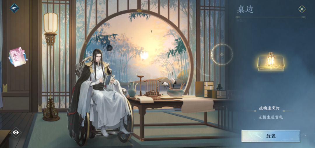 这盏灯不仅可以在黑暗中带来光明,同时也蕴含着各位同门温暖诚挚的心意。送出【疏梅逢霁灯】之后,各位同门可以在好感界面中将它展示出来。
