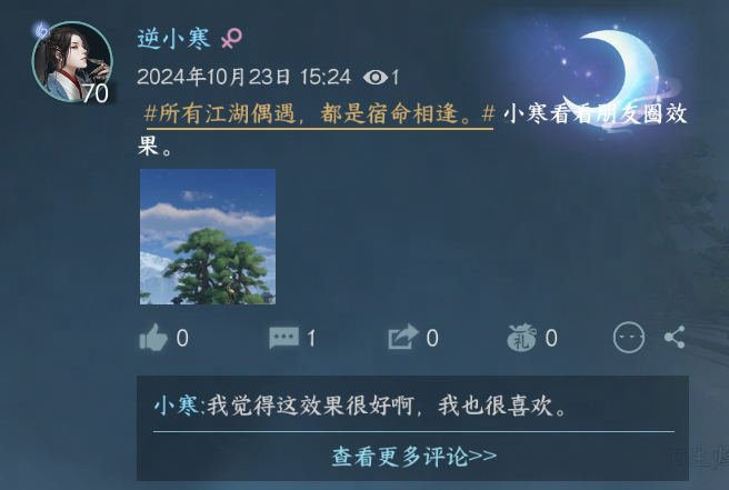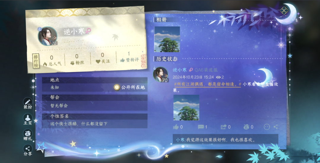 更加惊喜的是,在11月1日月牙儿生辰当天,游戏里还会限时开放生辰闲谈,各位同门可以去寻找无情开启谈话;前往好感界面赠礼,还可获取特殊语音反馈!