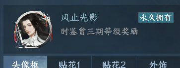 时鉴赏3级奖励:头像框【风止光影】