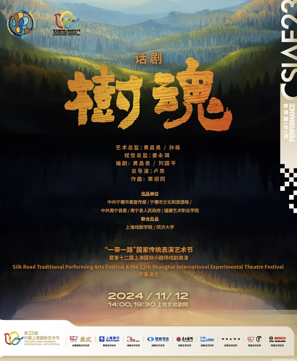 在第23届中国上海国际艺术节举办之际,又恰逢上海戏剧学院主办的“一带一路”国家传统表演艺术节开幕,大型原创话剧《树魂》将于2024年11月12日,展演于上戏实验剧院。