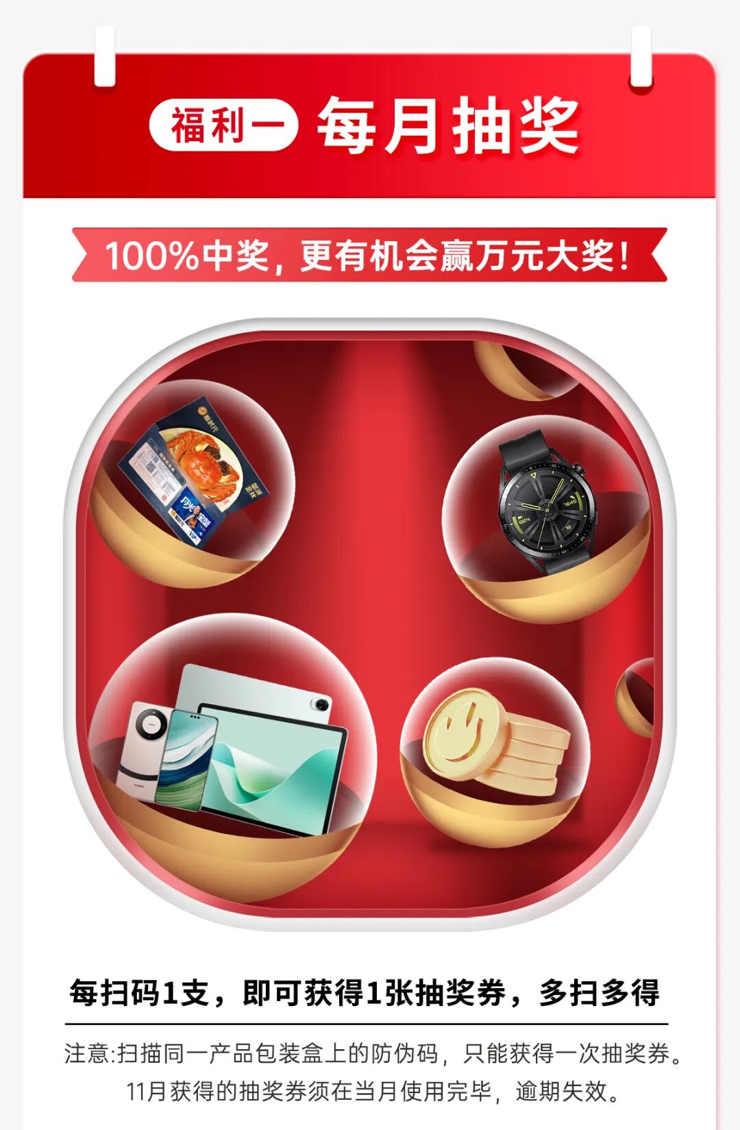 每扫码1支,即可获得1张抽奖券,多扫多得!