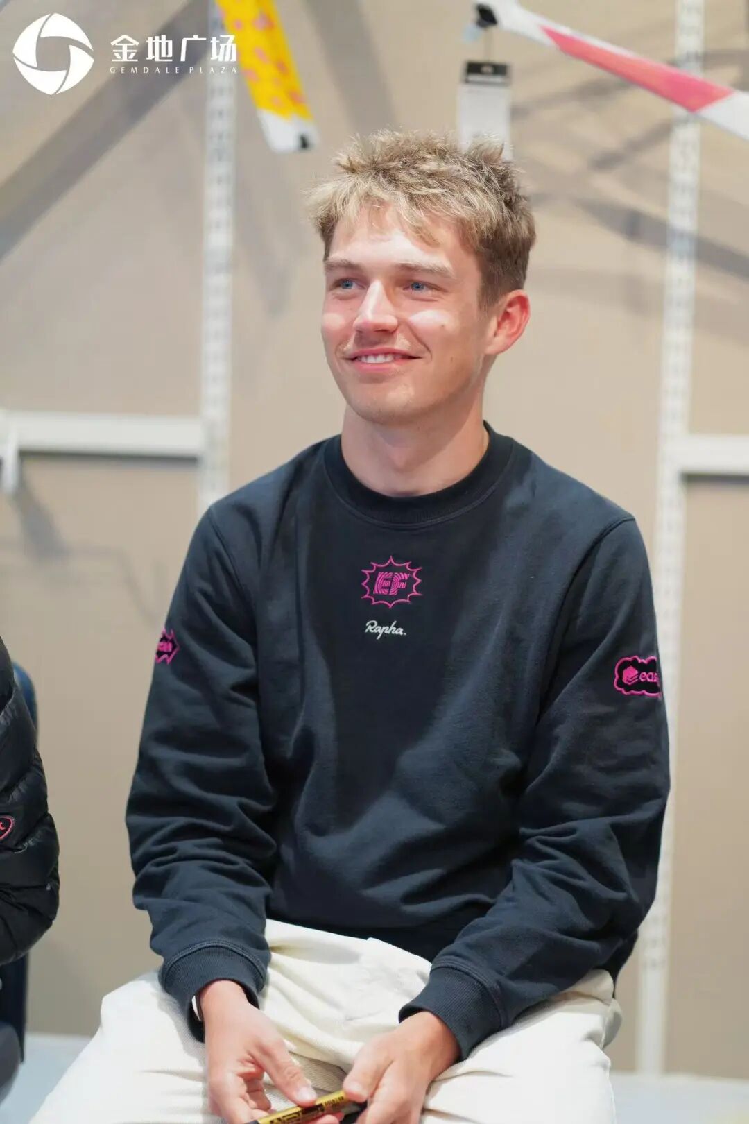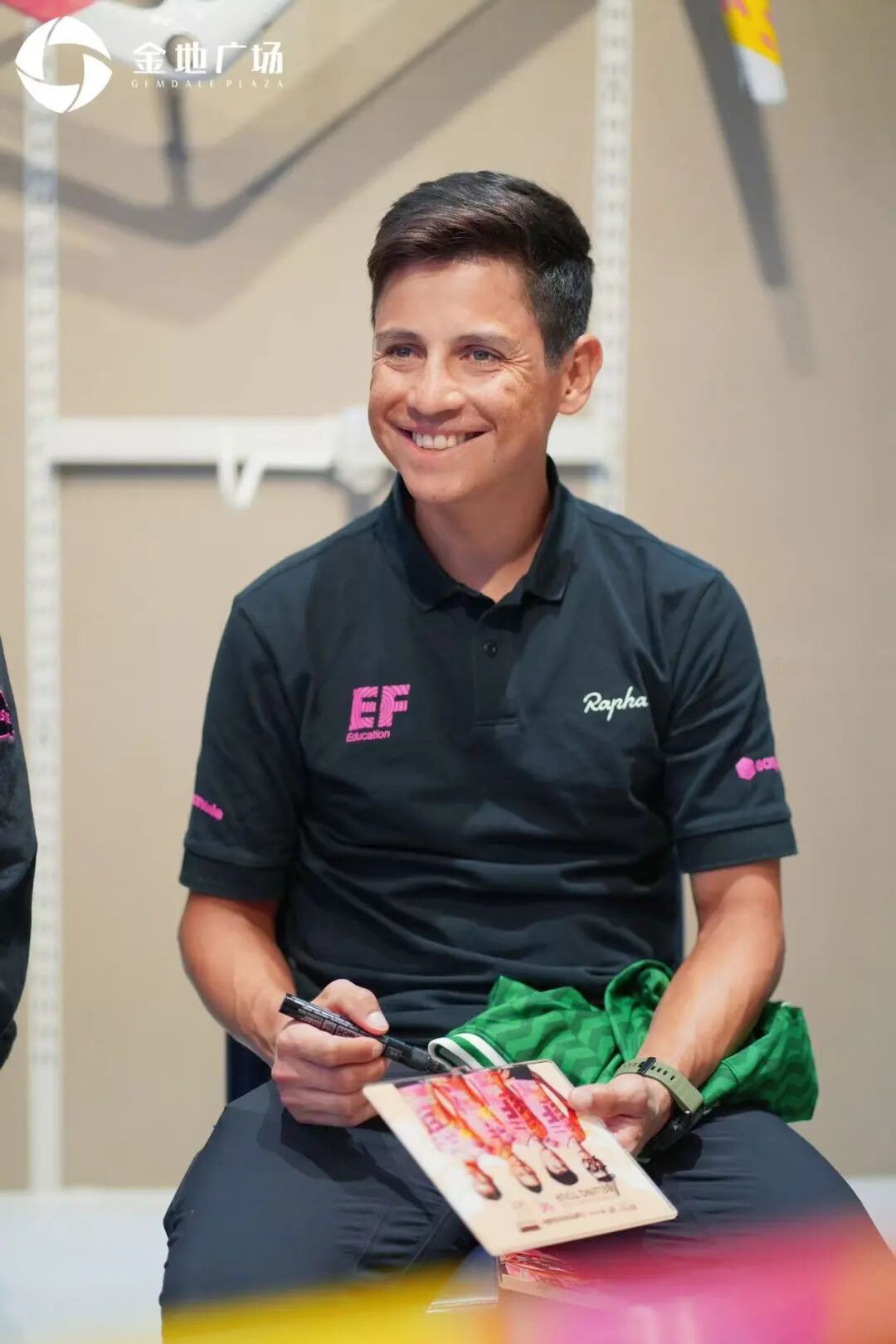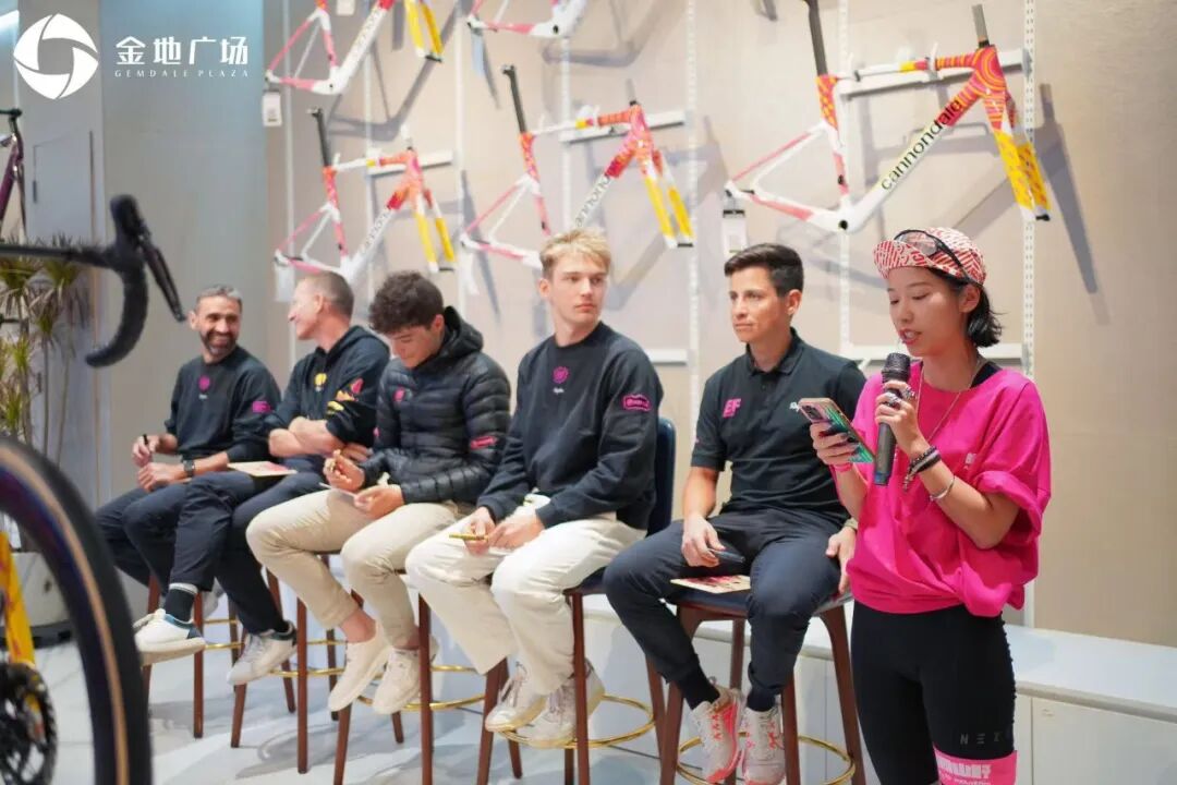 英孚教育车队(EF Pro Cycling Team)明星车手们向在场的每一位车迷挥手致意,瞬间点燃了车迷们的热情。并且,分享自己的训练经验和比赛经历,与现场的骑行爱好者们进行了热烈的交流。