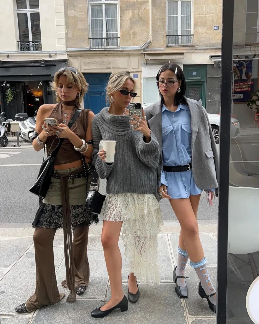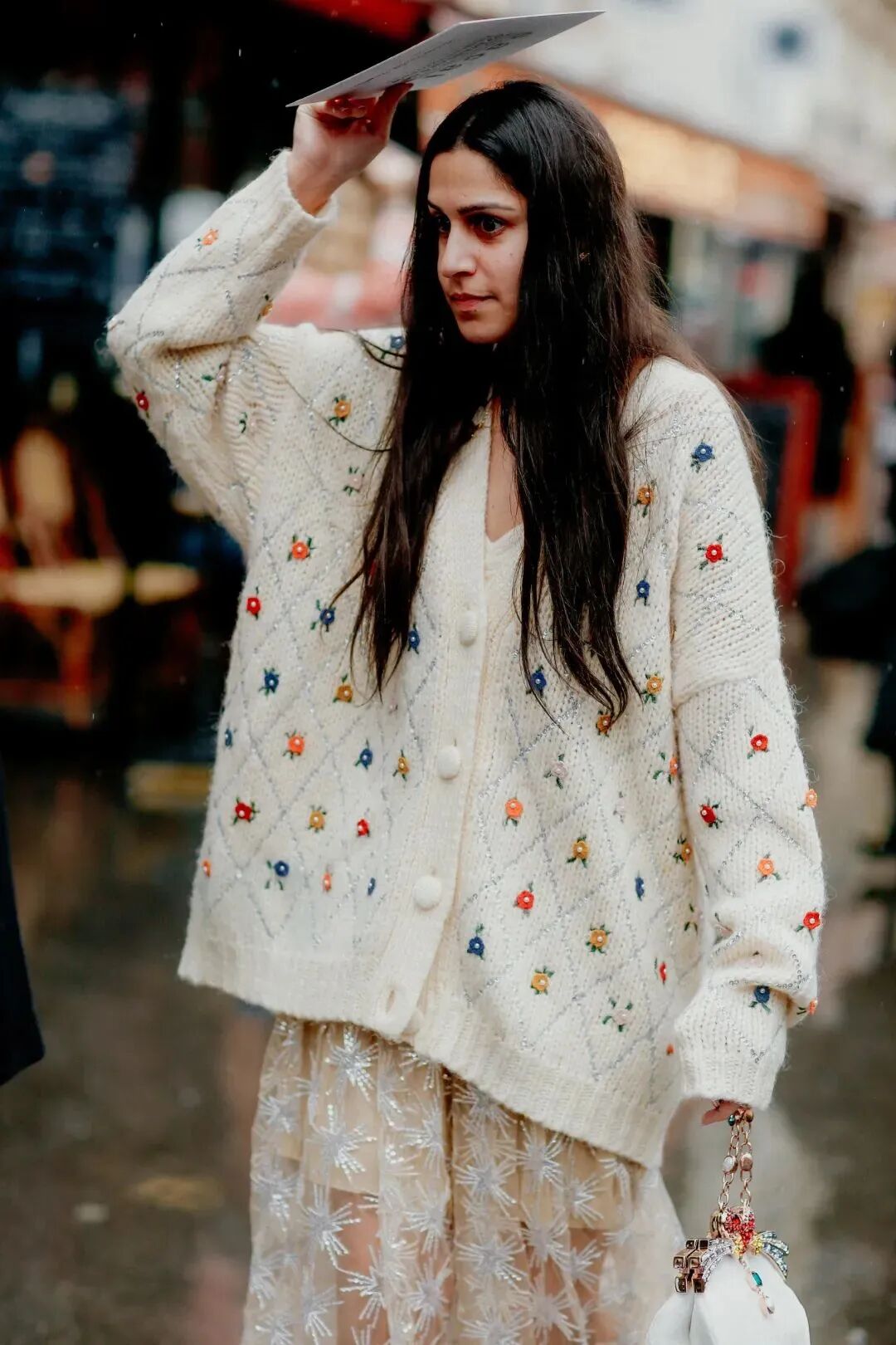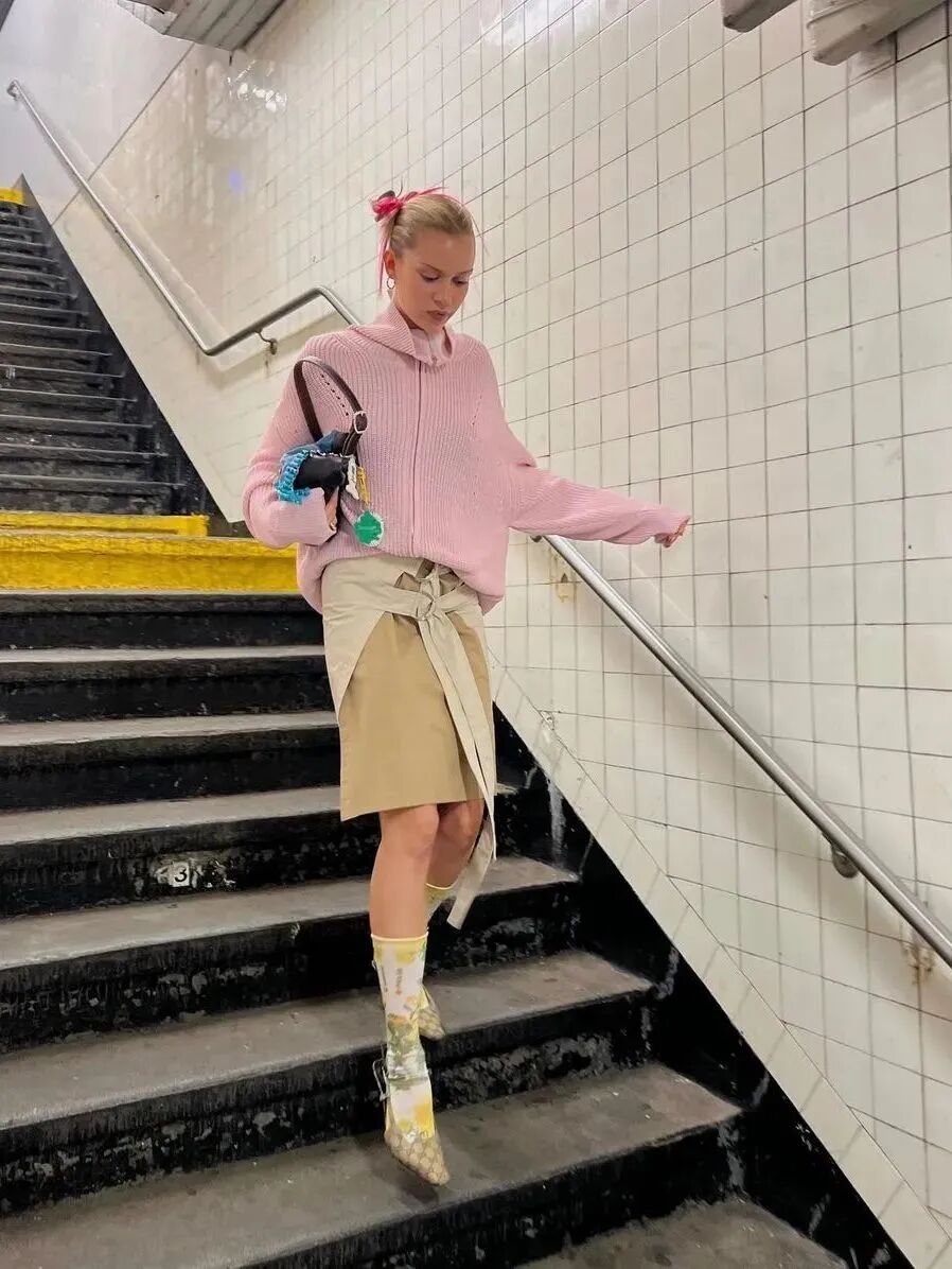 失序感穿搭的技巧就是不要那么循规蹈矩,小腿袜配芭蕾鞋、薄纱内搭配厚重的针织,再用包袋、头绳、耳饰等单品穿插其中,注入满满生命力。