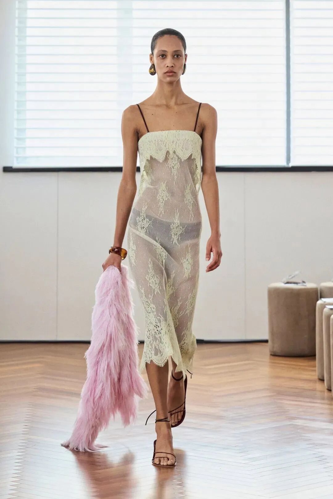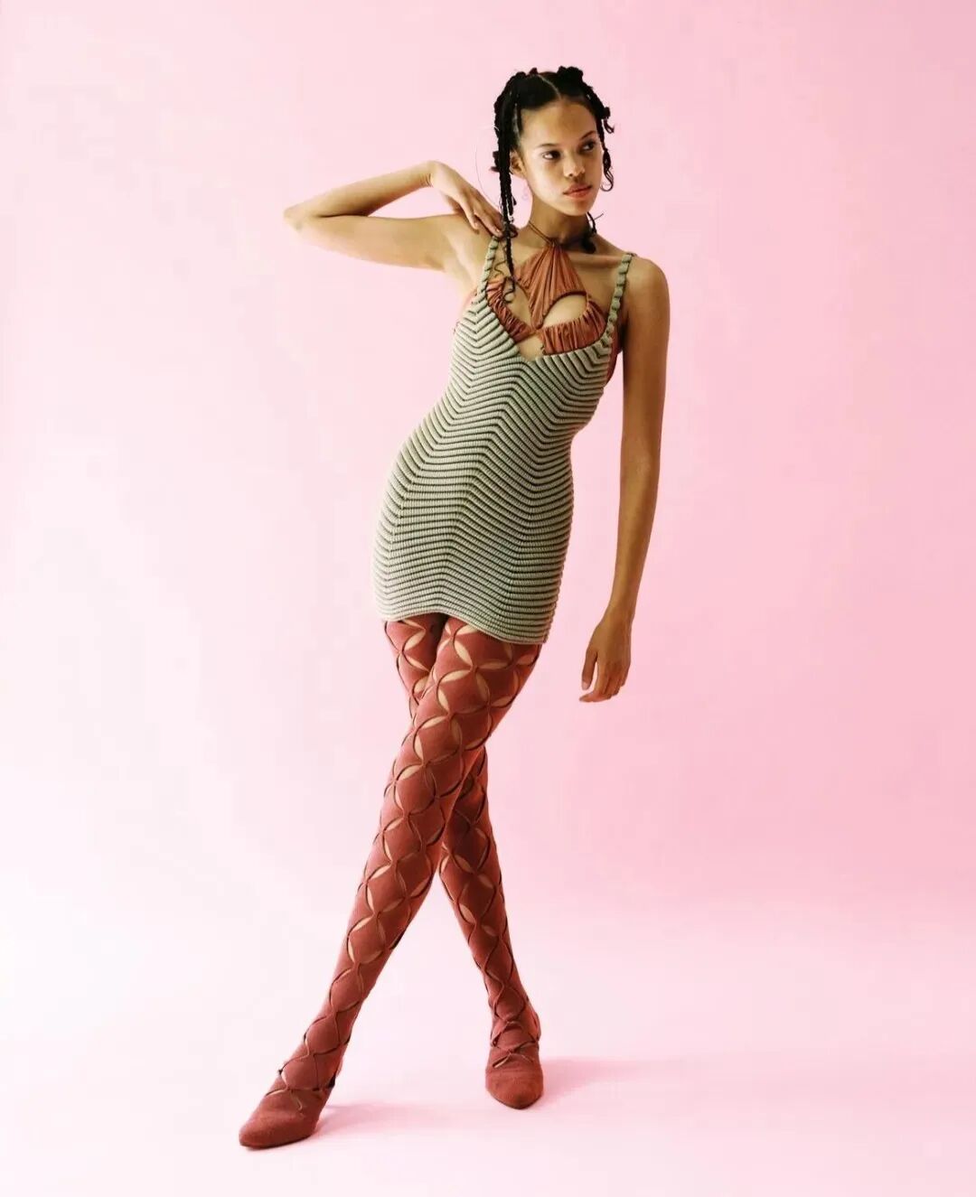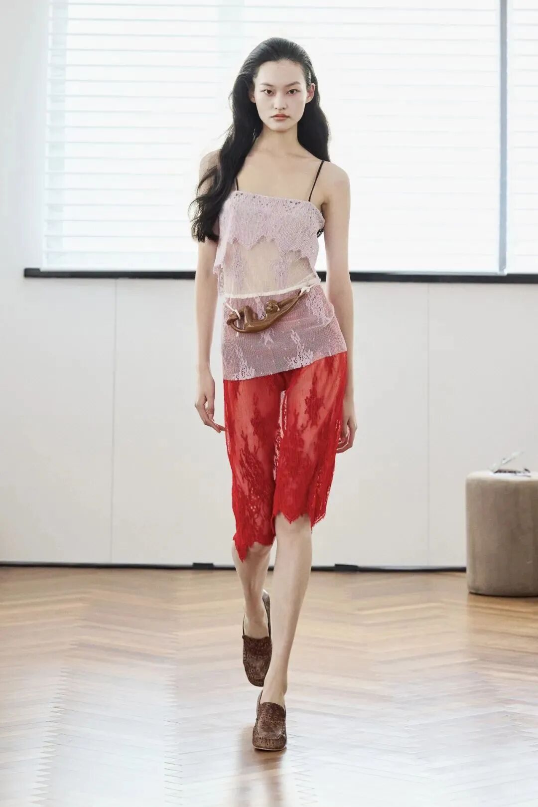 失序感穿搭的技巧就是不要那么循规蹈矩,小腿袜配芭蕾鞋、薄纱内搭配厚重的针织,再用包袋、头绳、耳饰等单品穿插其中,注入满满生命力。