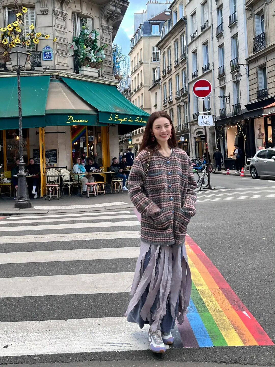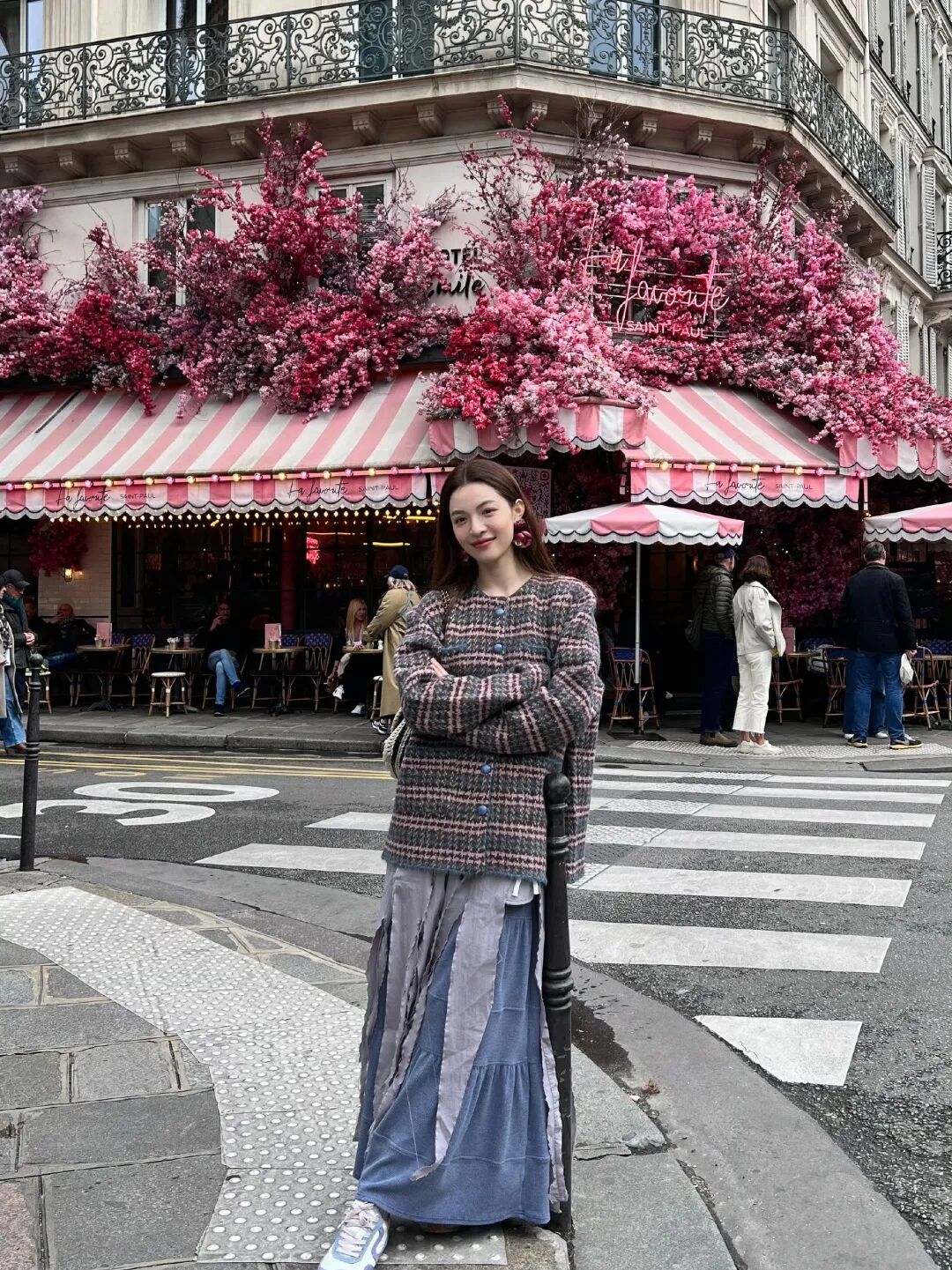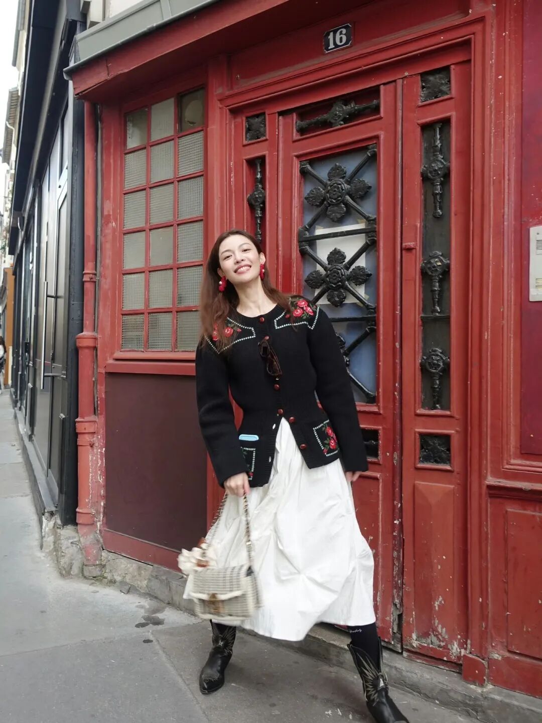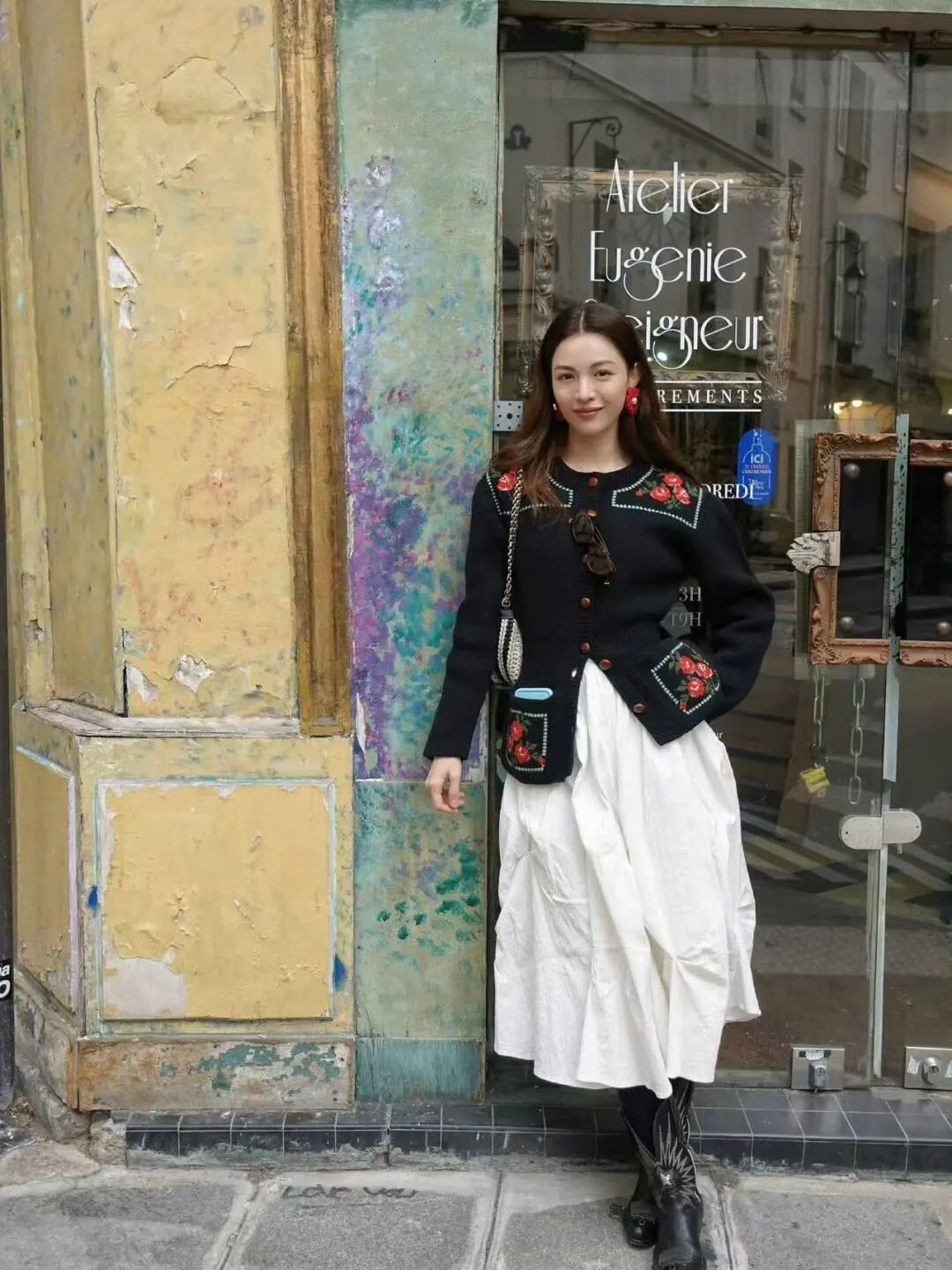 钟楚曦最近po出的巴黎游客照很适合秋冬季节抄作业!这套黑色针织衫的钩花很有清新元气的田园感,营造出巴黎Lady的慵懒风情。