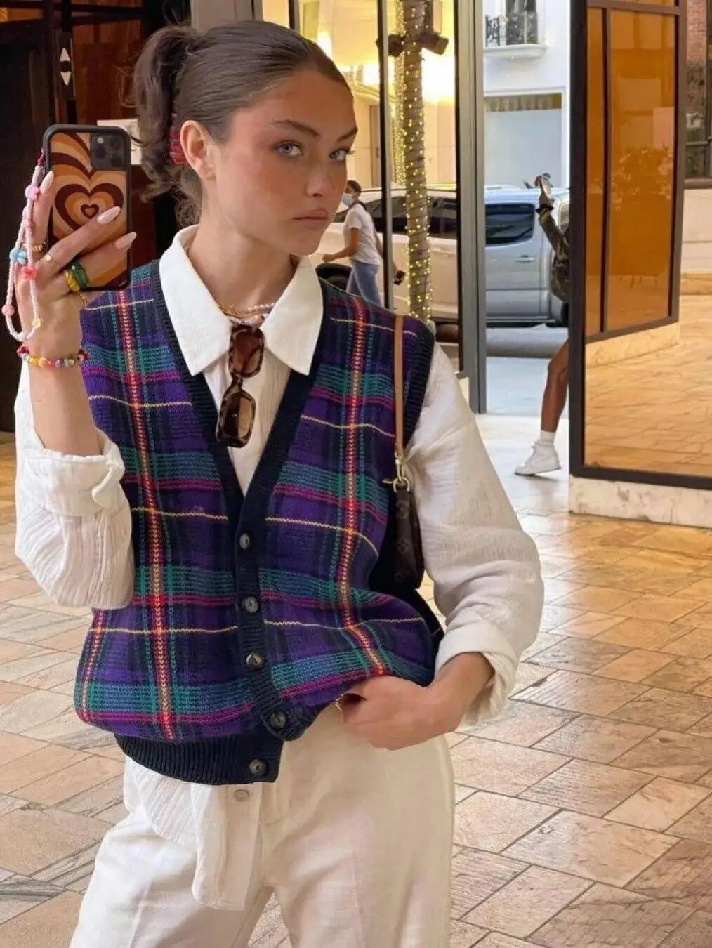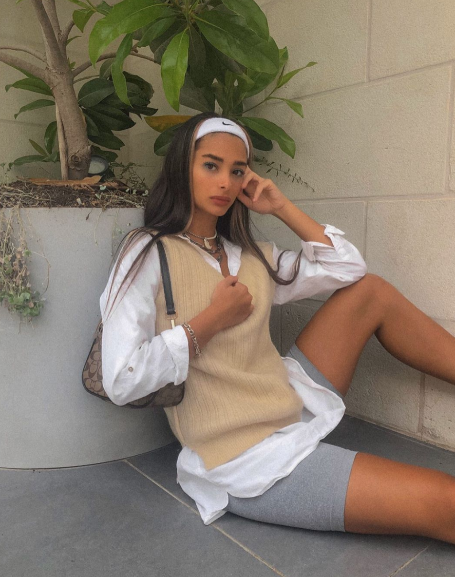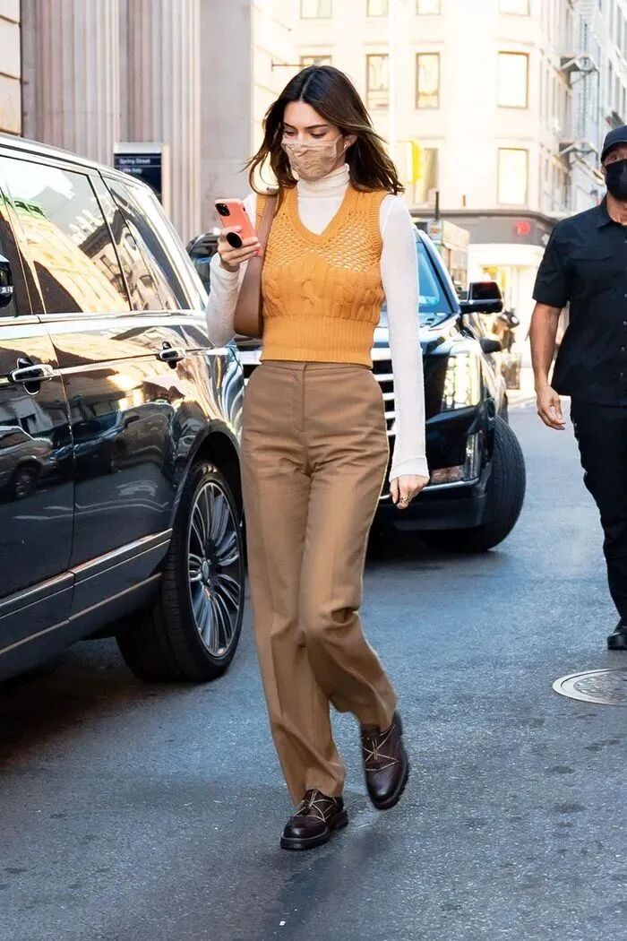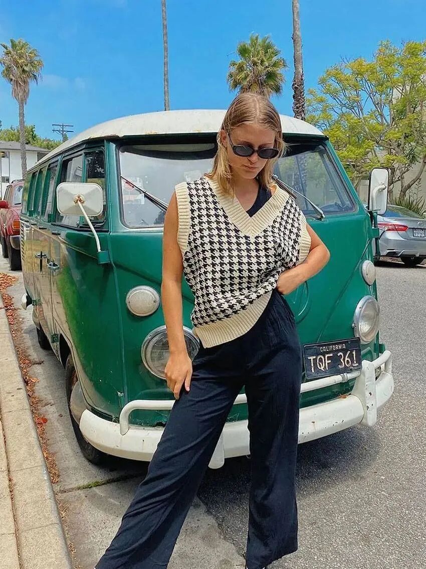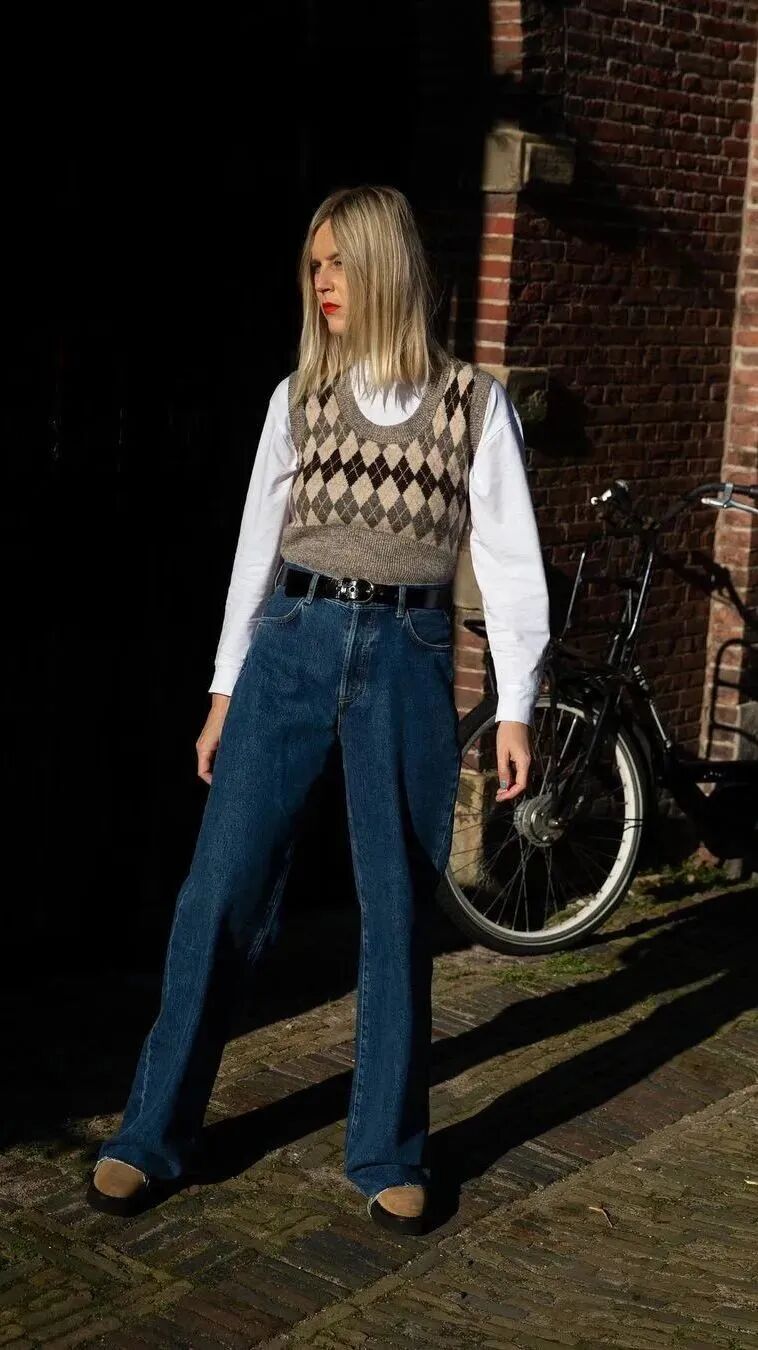 若是想要更加个性活力,可以大胆用针织马甲与卫衣、高领衫等单品结合,兼具街头与时髦。
