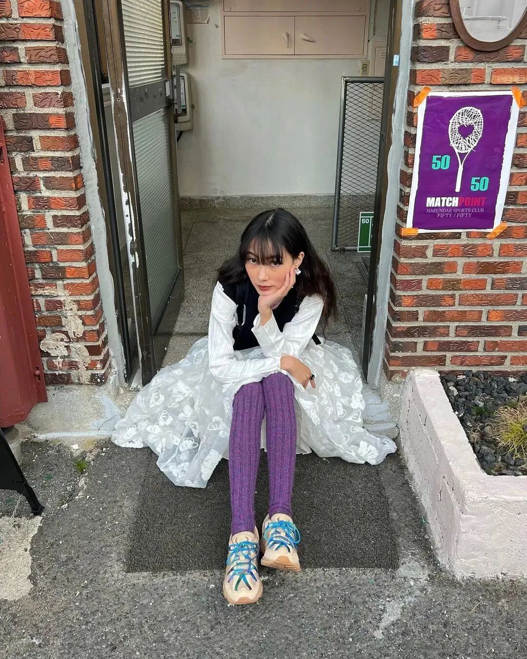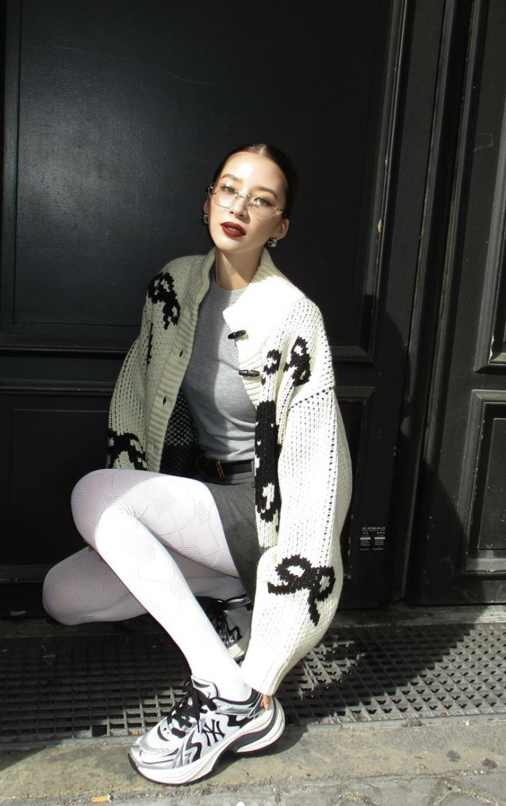 运动鞋叠加针织,完美平衡了知性温柔与机能活力,两者取长补短,错位的失序感营造出更上一层楼的时尚魅力。