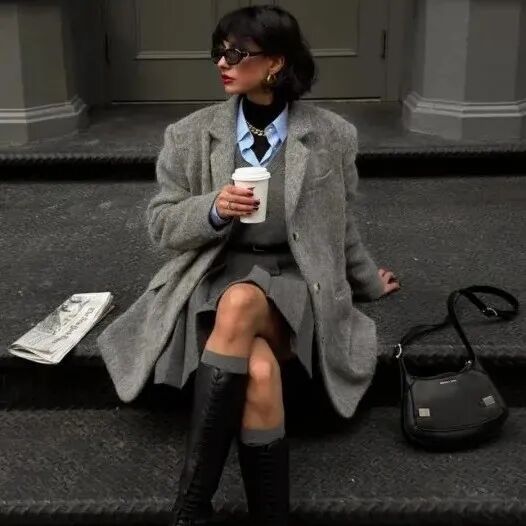 五彩斑斓的灰色自带独一无二的高级感,慵懒又不失优雅,干干净净很适合职场通勤传达,不会太扎眼,但也足够时髦得体。