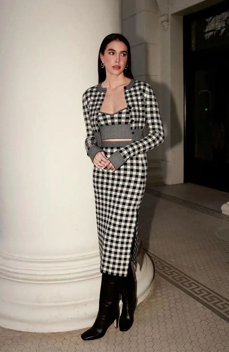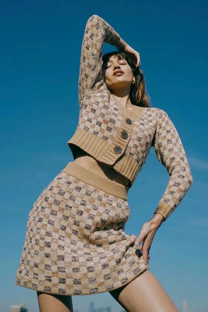 此外,若是想要玩味复古韵味,不妨在这个秋日试试将棋盘格纹样融入针织单品,简约又干净,再辅以珍珠、钻石等珠宝配饰,气质翻番。