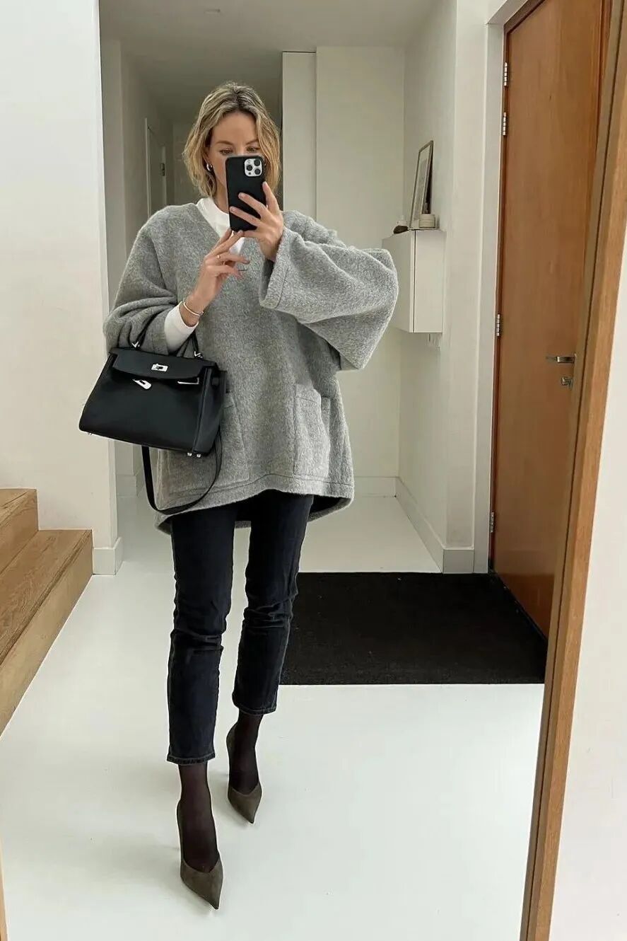 周一作为法定工作日,正适合用干练、经典且舒适的OOTD来应对。清冷简约的格雷系针织造型,恰巧是都市丽人们应对多变秋日的百搭之选。