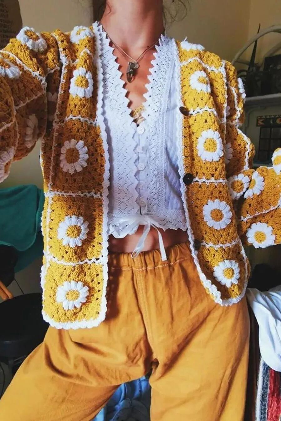 搭配时首先考虑的必然是舒适,自然装饰针织衫与裤装的组合透出清新可人的氛围。