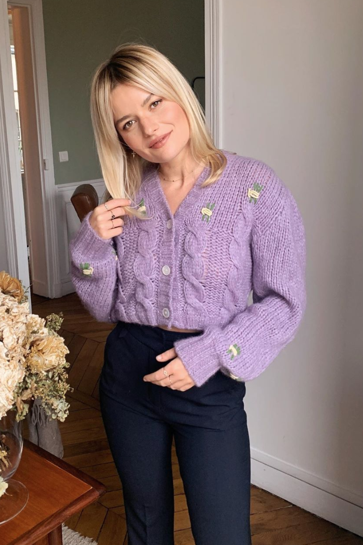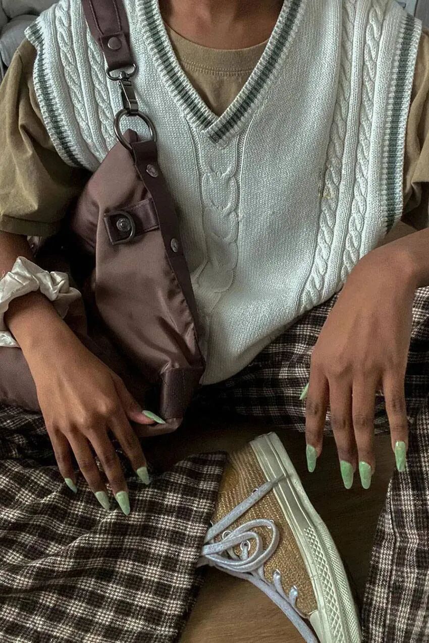 若是想要营造贵气十足的老钱风,那么一定得拥有优雅的绞花款针织开衫,色系上推荐选择米色、灰色、褐色等经典色系,耐穿又百搭。