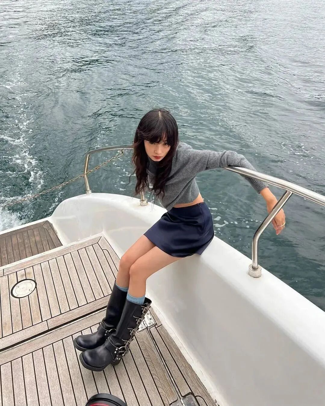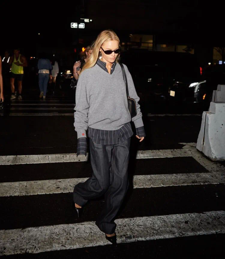Rose就深谙高智感穿搭的技巧,用灰色针织衫搭配直筒休闲裤,色彩干净,极简主义之中透露着精致与格调。