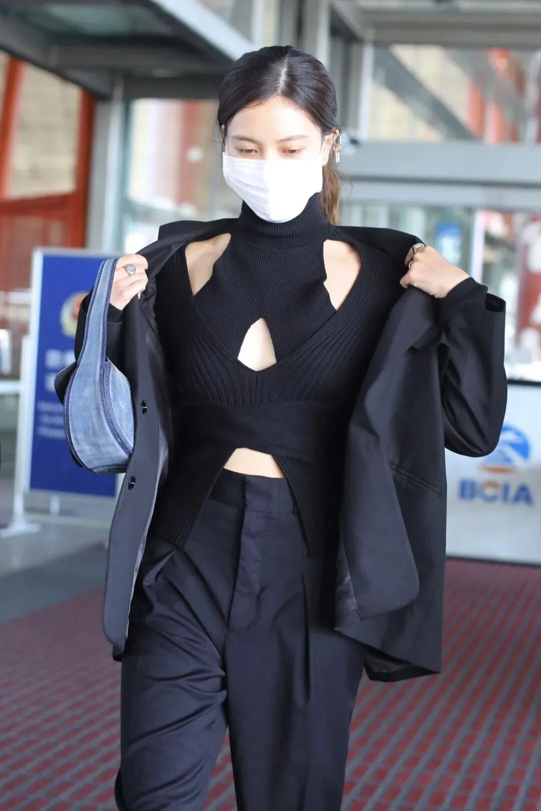 这种只扣一颗纽扣的穿法,增加了上半身的露肤度,无论是真空直穿,还是再配件内搭小吊带,都比常规穿法更加吸睛时髦,很适合抄作业~
