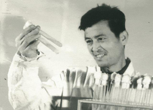 经过不懈努力,攻关团队终于试验成功了微生物驱油这一提高采收率的新方法。试验成功后,微生物采油高级工程师王传柱喜上眉梢,这张照片是50多年前实验成功后的纪念,也是油田科技人员不断攀登科技新高峰的生动体现。