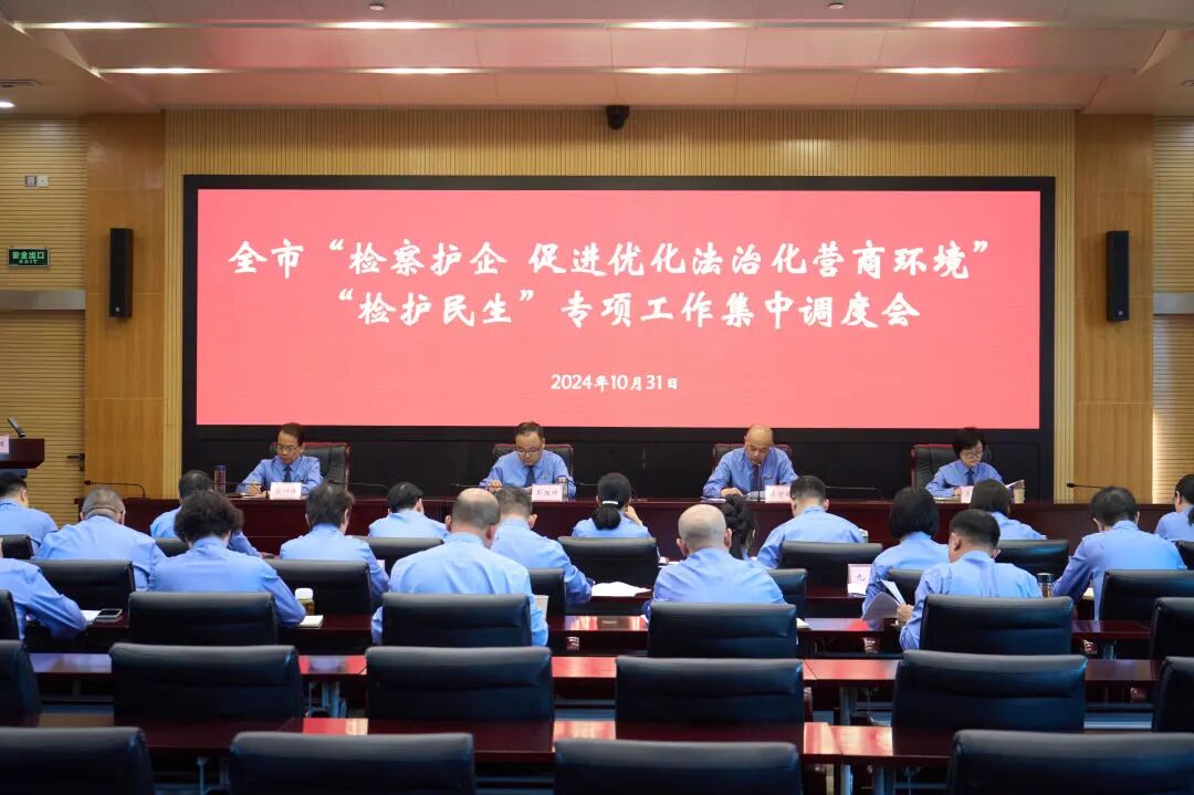 “全市检察机关要以时不我待的精神状态抓好专项工作,确保交出有质量、有数量、有效果的答卷,为奋力谱写中国式现代化武汉篇章提供坚强法治保障。” 10月31日下午,武汉市人民检察院召开全市“检察护企 促进优化法治化营商环境”“检护民生”专项工作集中调度会,深入学习贯彻党的二十届三中全会精神,全面深化落实最高检党组关于“检察护企”“检护民生”专项工作部署,迅速落实全省检察机关“检察护企”专项工作集中调度会精神,部署推进“检察护企”“检护民生”专项工作。市院党组书记、检察长彭胜坤出席并讲话。