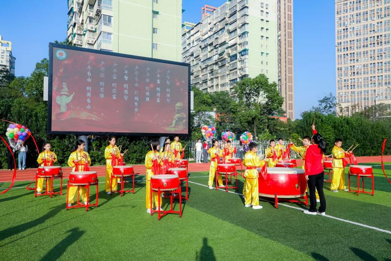 开幕式在震撼人心的击鼓表演《少年中国说》中拉开了序幕。激昂的鼓声回荡在校园上空,八一小学全体师生齐诵齐唱,共同演绎着军葵少年的壮志豪情。