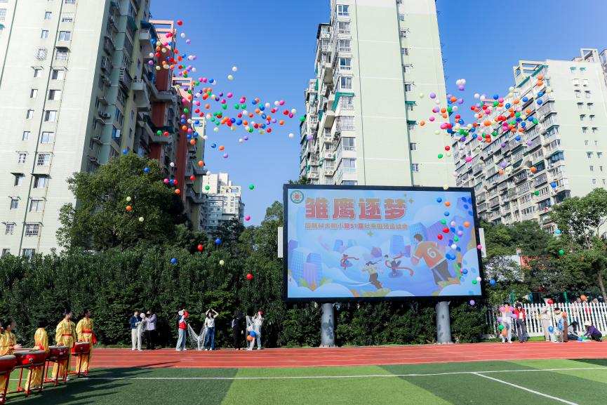 伴随着五彩斑斓的气球升空和无人机横幅划过天际,第51届秋季田径运动会正式开幕,整个校园沸腾了起来。那一刻,同学们的欢呼声、掌声与呐喊声交织在一起,形成了一幅动人的画面。