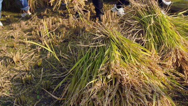 割稻体验与期待在一望无际的金色稻田里,大家亲身体验了割稻的乐趣。10月,稻田里的稻穗金黄一片,呈现出一片丰收的景象,但是细心的你会发现,舅舅家稻田里的稻穗并没有非常丰硕的现象,其原因就是舅舅家大米用的是原生品种——江南原生小粒米,米粒原生乳黄色,软糯香粘,小巧圆胖,产量低,味道好。