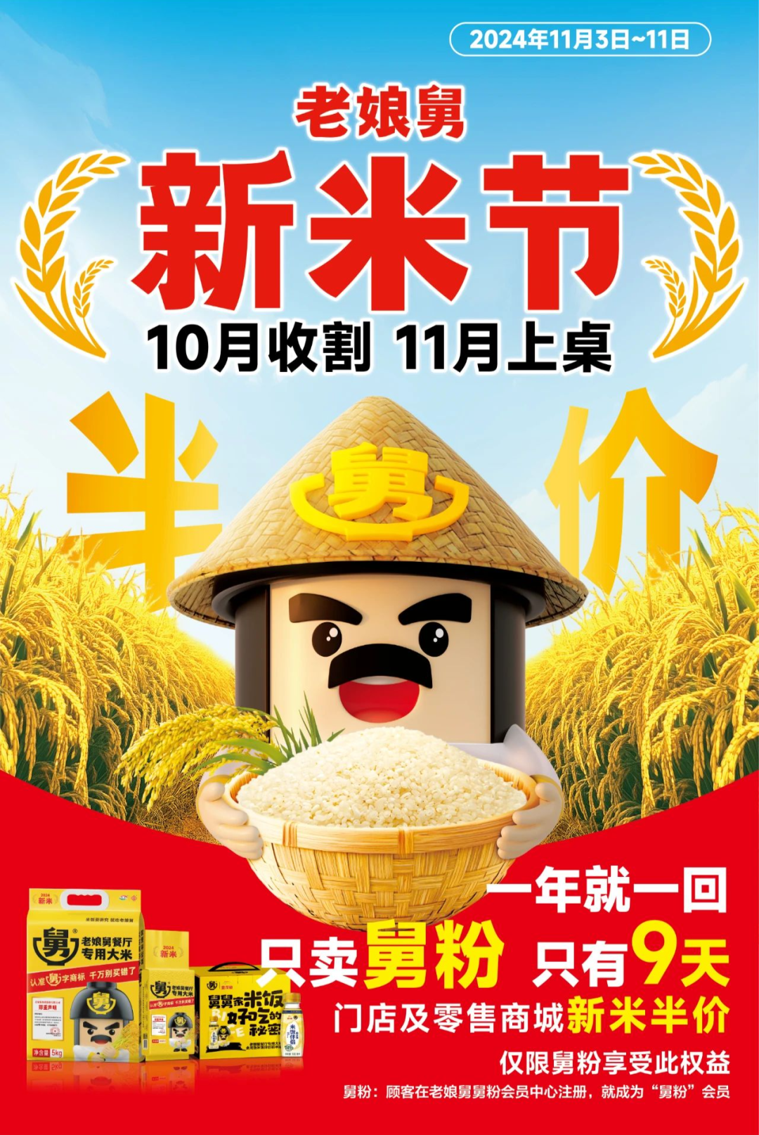 寻源之旅的最后,基地的负责人程总为大家颁发了大米基地认证官证书。这一证书不仅是对此次探寻之旅的美好纪念,更是对老娘舅大米卓越品质的认可。它象征着大家对老娘舅大米从源头到餐桌整个过程的深入了解和信任。钢粉们也纷纷表达了对老娘舅2024年新米节的美好祝愿,预祝新米节大卖!新米节即将开始啦,这一次小编亲自随队去了大米基地,帮大家也亲眼见证源头好米!所以11月3日-11月11日为期九天的新米节,和我一起买大米吧!上一期为大家详细介绍了2024年的新米节购米攻略。![]()