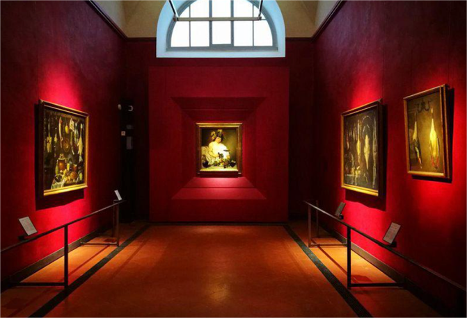如果你有机会造访佛罗伦萨的乌菲兹美术馆,你会留意到在古典绘画厅中,意大利艺术家卡拉瓦乔的作品展示区域均采用了戏剧照明。这些区域的照明采用了暖色调的聚光灯,它们被精确地聚焦于艺术品表面,以突出画作的视觉焦点,使其成为展厅中的焦点。