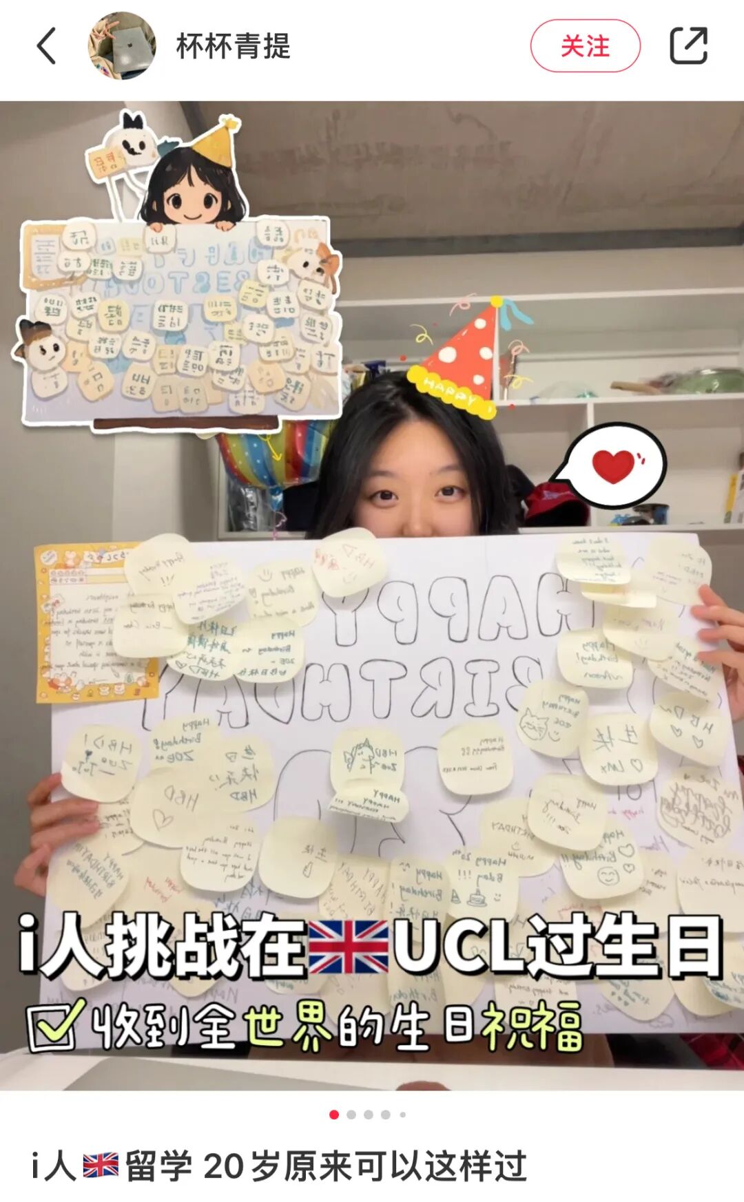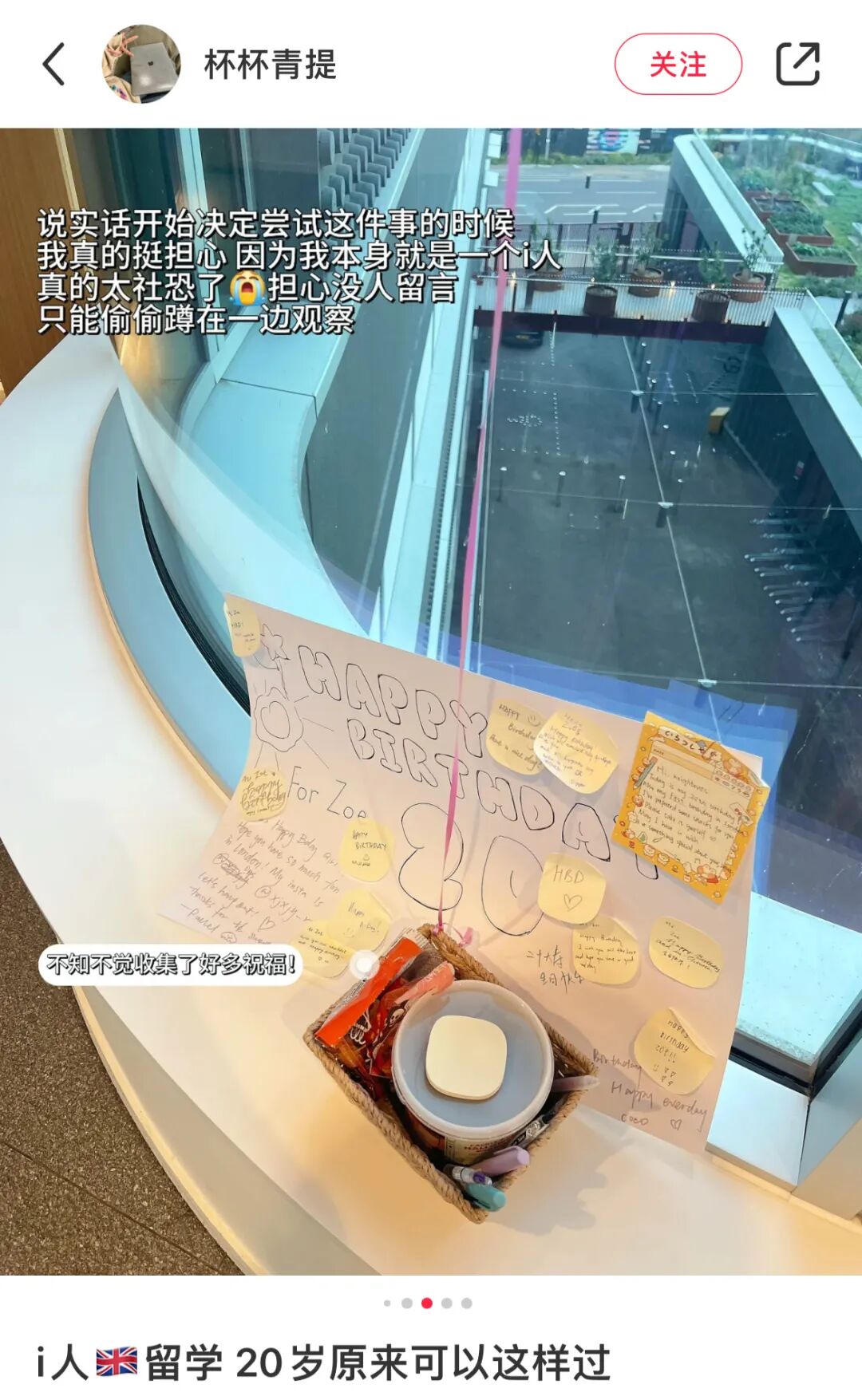 i人过生日是什么成分?幸福得过分!在外留学的@杯杯青提 为了给20岁一个隆重的开始,偷偷在电梯口的窗台放了气球、糖果、留言板,想收集来自世界各地的生日祝福。刚开始她只敢躲起来偷看大家,越来越多的人留言后,终于鼓起勇气和这些素未谋面的伙伴一起聊天,又幸福了一集!