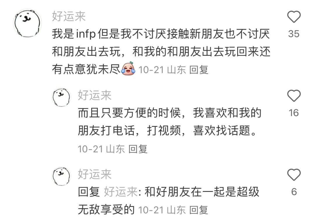 其实对于愿意社交的i人来说,TA们也在那些充满深度和趣味的高质量社交中偷偷感受幸福。