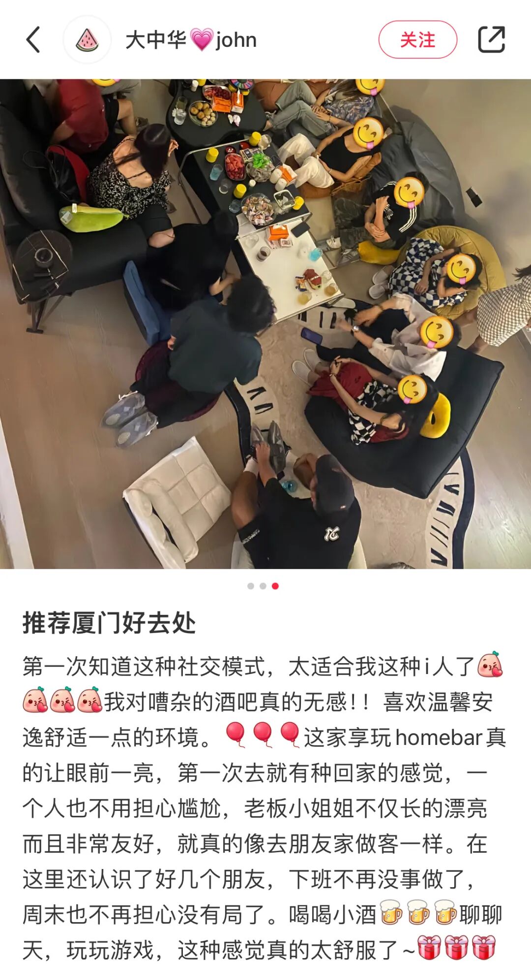@我要睡觉了 把家里的客厅变成了homebar,请陌生人来家里一起喝酒、看电影、玩游戏。最重要的是在这里社交,没有强行的push——自我介绍,可以随意穿着,和一群志同道合的小伙伴一起沉浸在一个自由舒适的空间中畅聊人生,真让我们i人找到社交宝地了。