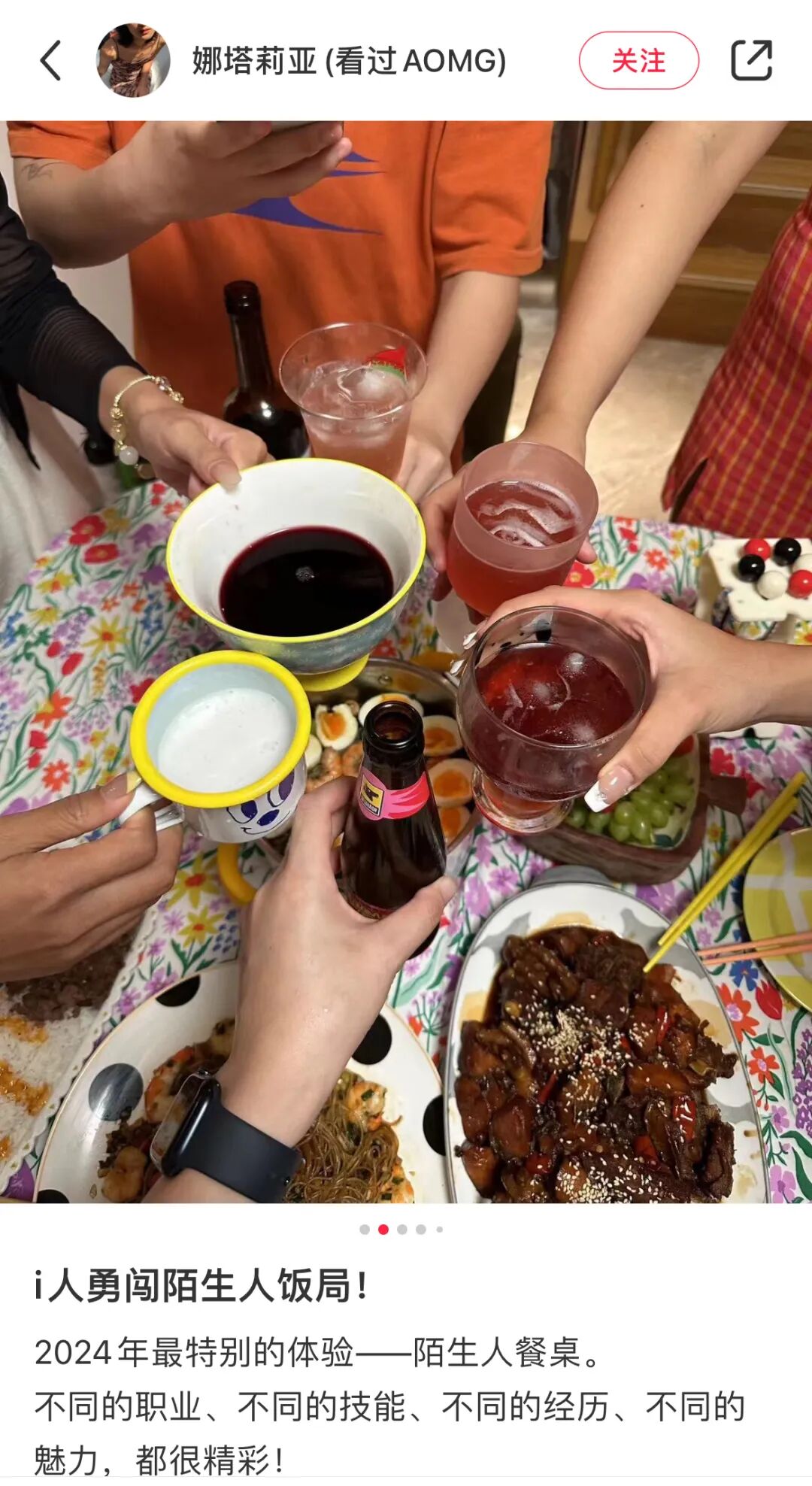 @娜塔莉亚(看过AOMG)则是在陌生人饭局中找到了i人社交新指南:依靠e人。只需要一点点赴局的勇气,就可以通过e人打开一个舒服美好的夜晚。