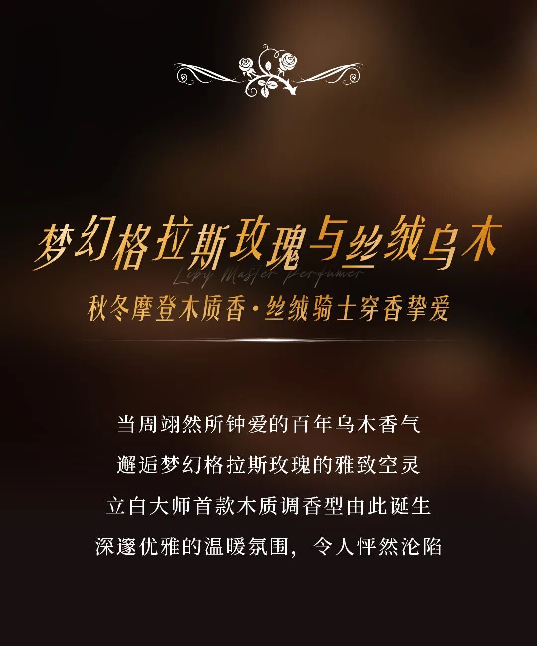 摘要:跟随丝绒骑士周翊然的脚步,感受立白大师香氛「梦幻格拉斯玫瑰与丝绒乌木」的摩登香气。