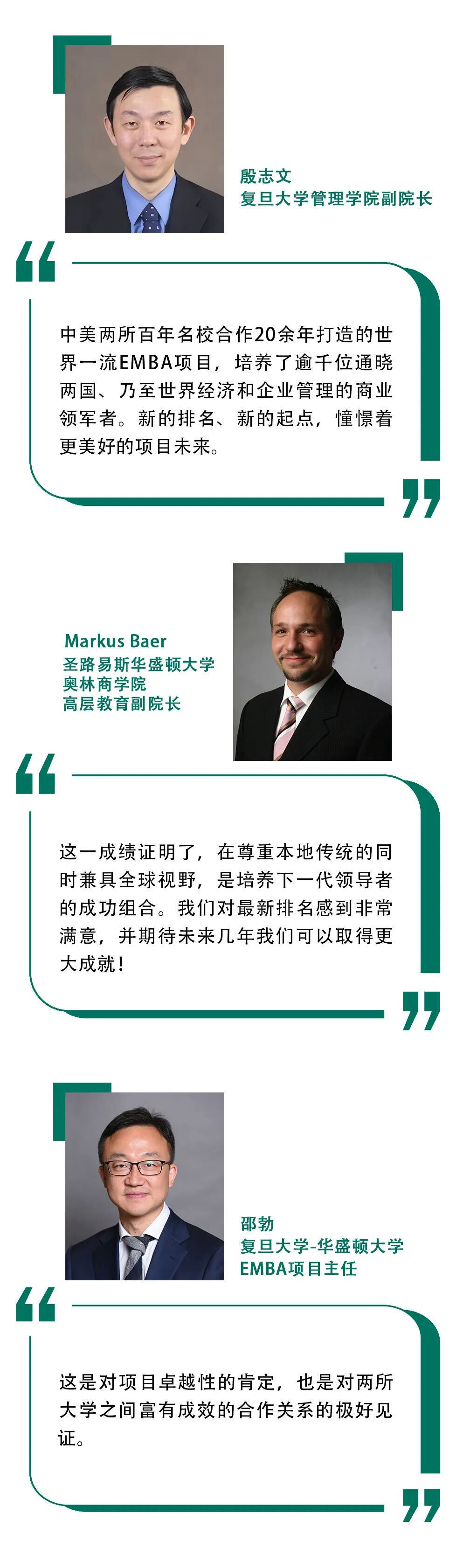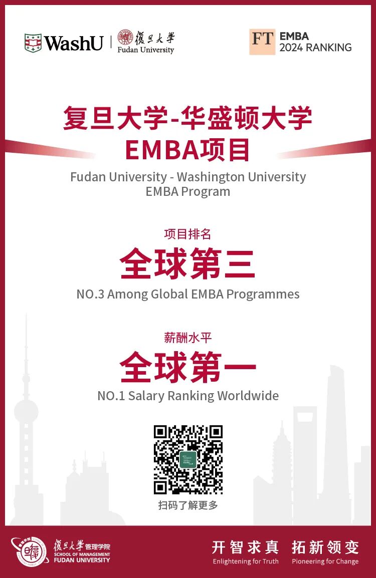 10月14日,英国《金融时报》(FT)发布全球EMBA项目排名,复旦大学-华盛顿大学EMBA项目再创历史新佳绩,位列全球第三,毕业生薪酬水平位列全球第一。