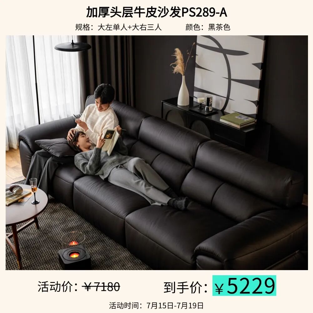 复古黑茶色牛皮沙发PS289-A放在客厅,高级却不显沉闷,略显微褶的外观加上精致的亮银装饰条让沙发饱满挺括的同时又有层次感。