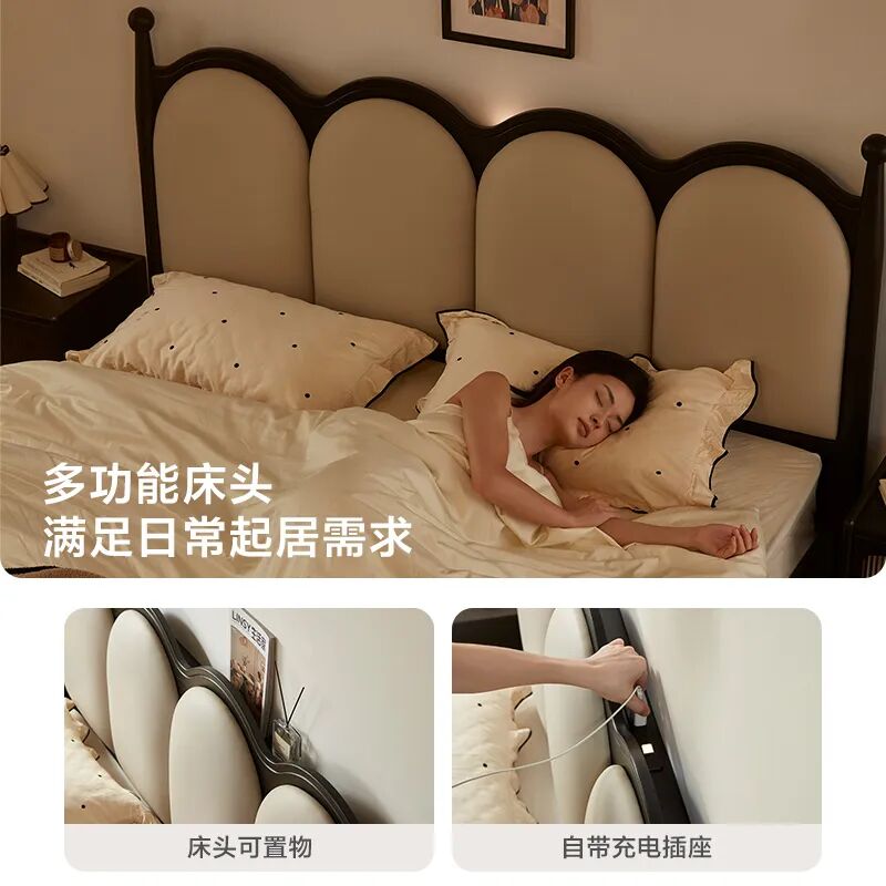 靠背面料选用奶白色生态云皮,不仅颜值高,日常打理也不用费心。床头自带便捷插座和柔光小夜灯,夜晚躺进绵软舒适的大床上看书追剧,这日子当然要越过越美好!