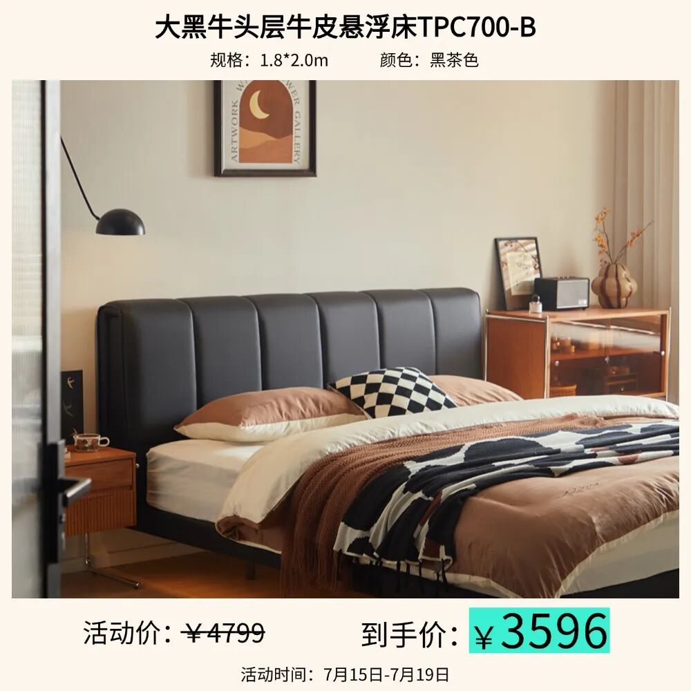 强推这个大黑牛头层牛皮悬浮床TPC700-B,简洁分明的线条组成琴键式靠背,再加上床身悬浮设计,搭配暖光灯带,晚上一开灯,卧室立马边变身好梦天堂!