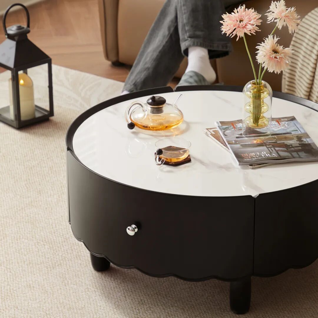 茶几地柜嘛!除了收纳还能找乐子,上层展览小物件,下层大容量储物空间,配上同色系岩板茶几,再加上移动花瓣小边几,喝茶/闲聊/听歌,把生活的乐趣也藏在这里!