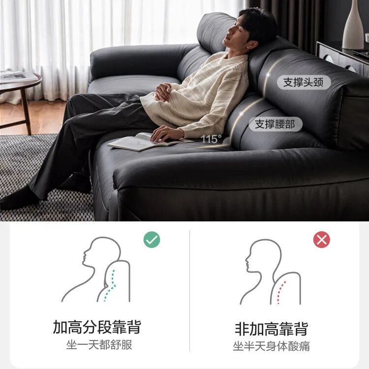 真的可以在这个沙发上躺很久,大朵蓬松鹅毛+公仔棉大靠包,搭配分段加高靠背,承托头、颈、腰,啊啊啊!这就是理想中的满分坐靠感!