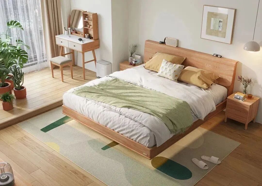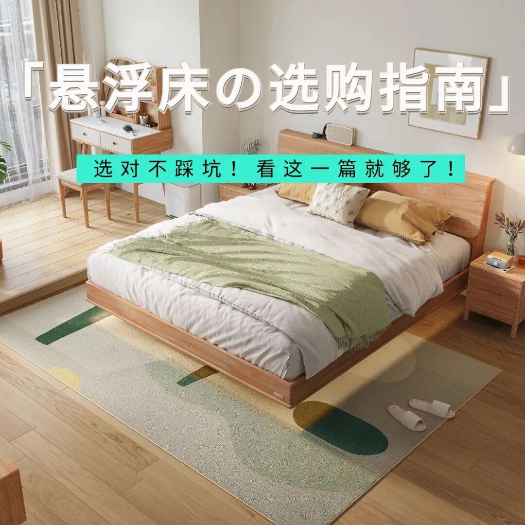 选一张好床,让卧室清新又加分,UU们快看它!VR1A-A实木悬浮床,进口橡胶木打造,床侧板、床脚等受力部件都做了加粗加厚处理,耐用性能直接翻倍!