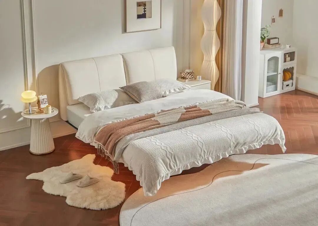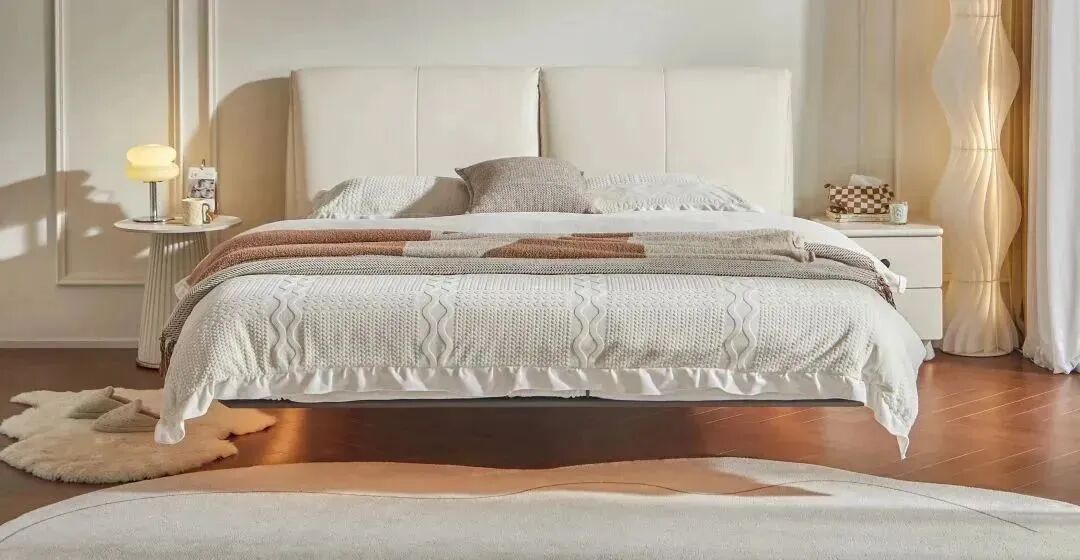 饱满“大象耳朵”靠包很有设计感,是我心水的梦幻悬浮床!分体独立的宽大靠包,软软弹弹靠着超舒服,两个人躺床上一个追剧一个打游戏互不影响。头层牛皮质感真的没话说,细腻亲肤经久耐用。