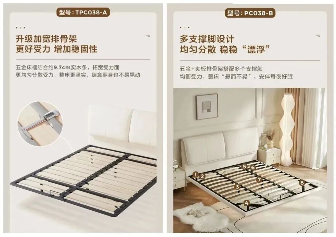 五金床框结合约9.7cm的实木条,加厚加宽了床架排骨架,受力面更宽,让整个床的稳定性UP!UP!再也不用担心睡觉翻身咯吱咯吱响,真的很适合打工人哦,下班后休息娱乐都巴适!