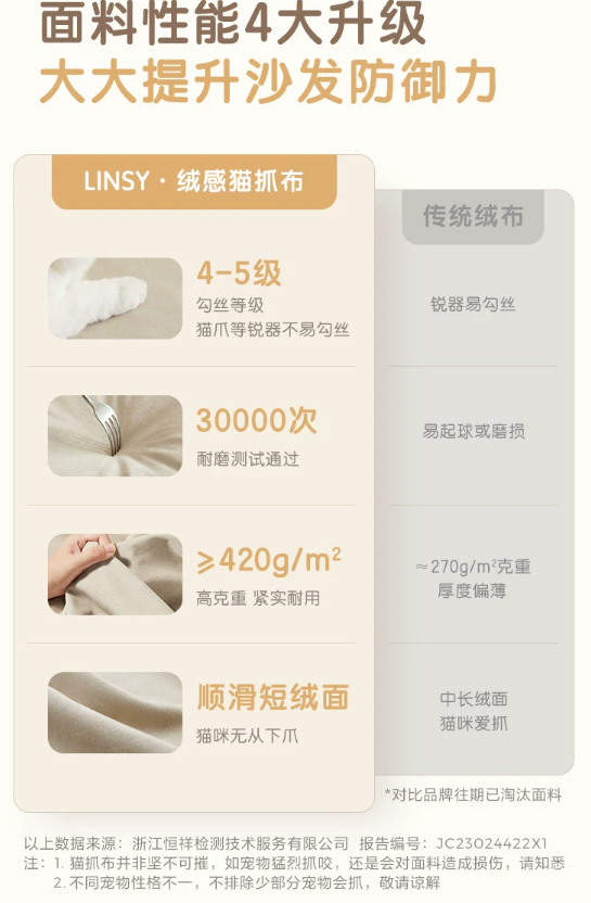 家里有猫咪哈基米的有福啦!SO40-E选用厚实绒感猫爪布,有了它,家里的哈基米都不会再“破坏”沙发啦,420g/㎡的高克重紧实耐造,顺滑短绒面,哈基米都无从下爪!
